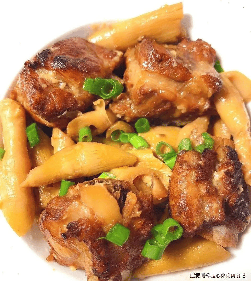 具体做法:排骨500克焯水,春笋2根去皮切块后焯水(去草酸)。锅中炒糖色,下排骨翻炒上色,加姜片、生抽、老抽炒香,加水没过食材,小火焖30分钟,加入春笋再焖15分钟,收汁出锅。排骨酥烂脱骨,春笋吸饱肉汁后脆嫩鲜甜。