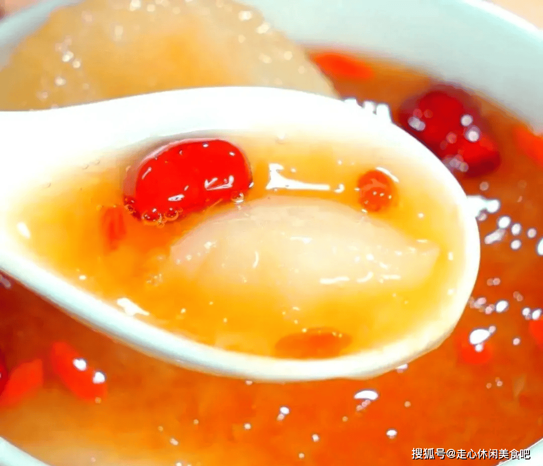 具体做法:雪梨2个带皮切块(梨皮是汤色金黄的秘诀),银耳半朵泡发撕小朵,话梅3颗、冰糖适量。除枸杞外所有食材冷水下锅,水开后转小火慢炖40分钟,出锅前撒枸杞焖5分钟即可。汤汁浓滑挂杯,梨肉软糯,温润入喉。