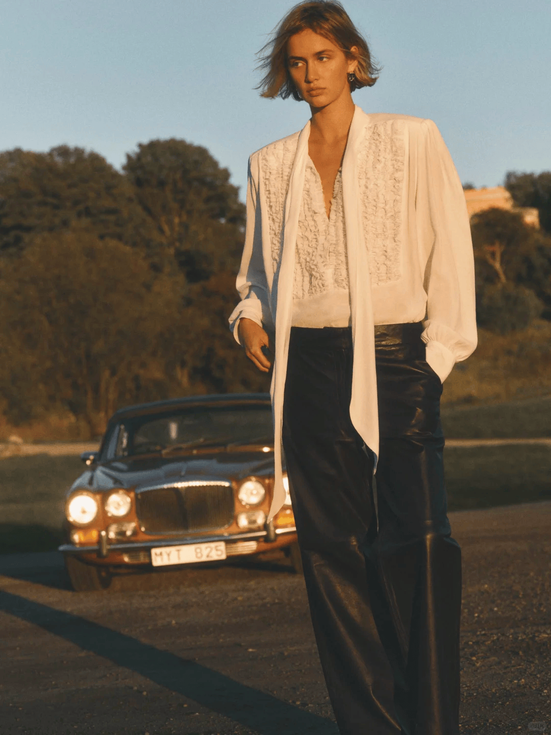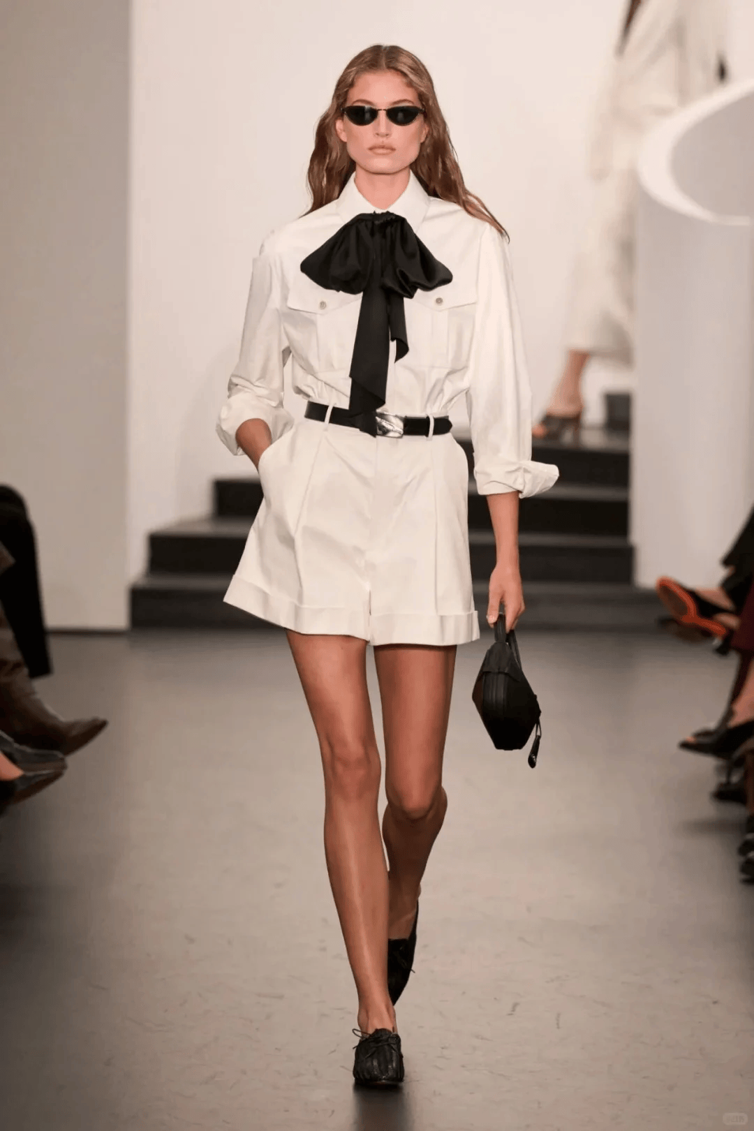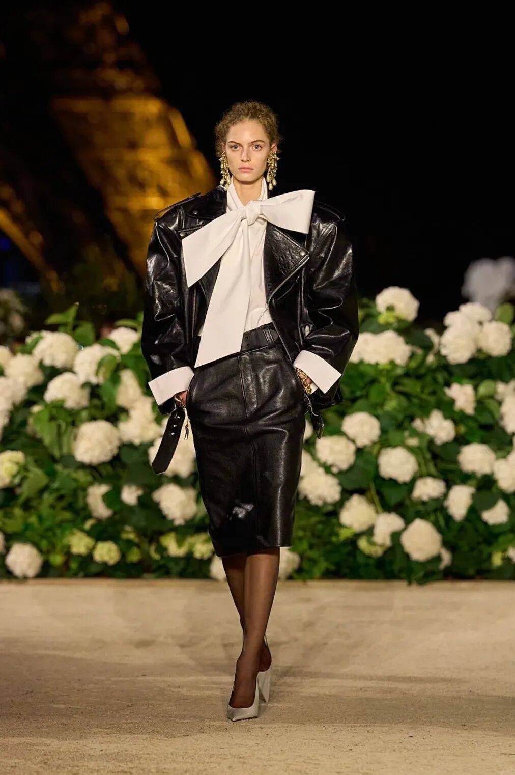 特点:今年秀场高频出现的“氛围感选手”,领口或胸前的飘带是核心设计,材质以真丝、雪纺为主,自带柔光滤镜,轻盈飘逸如“行走的春风”。