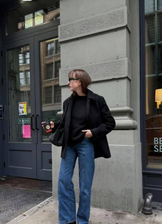 黑色的“兼容性”极强,无论是正式场合的西装、直筒裙,还是休闲场合的针织衫、牛仔裤,黑色都能“无缝衔接”。比如黑色直筒裤可以搭配羊绒衫穿出自知性通勤风,也可以搭配短靴穿出休闲时髦感;黑色针织衫既能内搭长款外套,也能单穿配裙子,满足不同场景的需求。