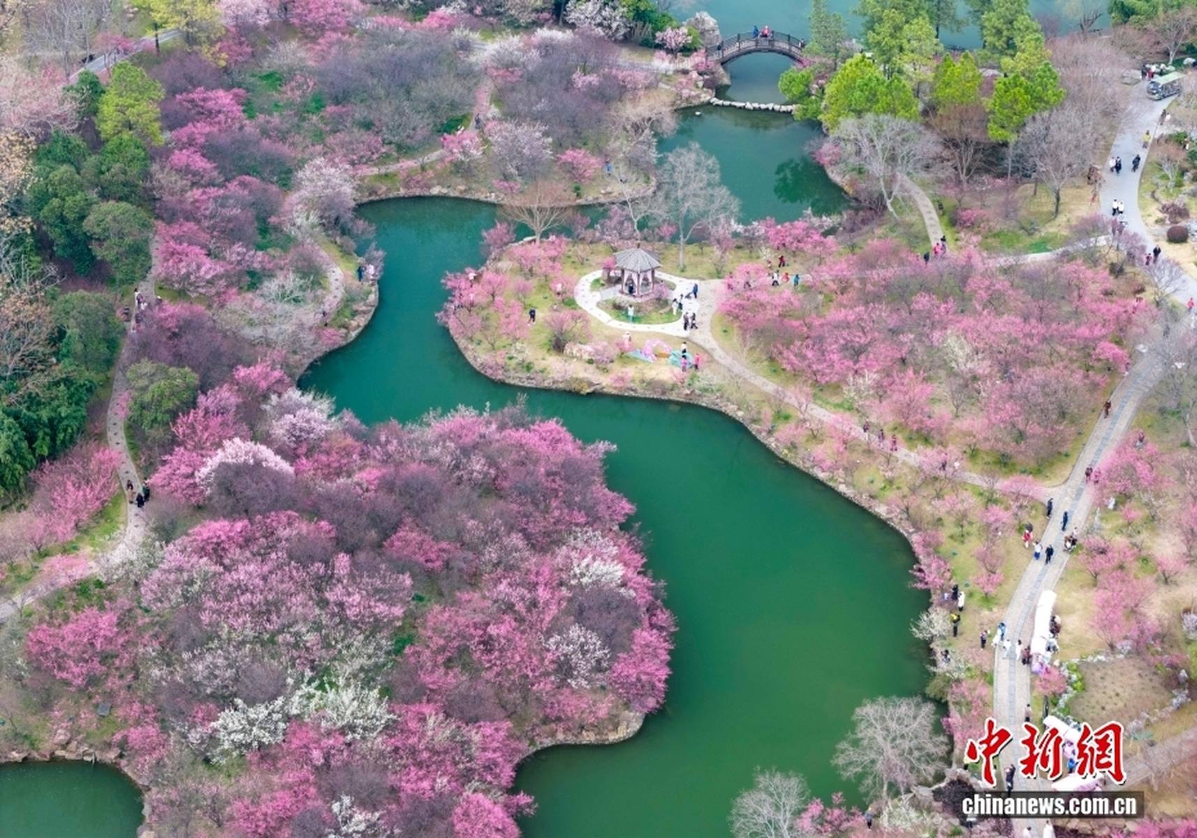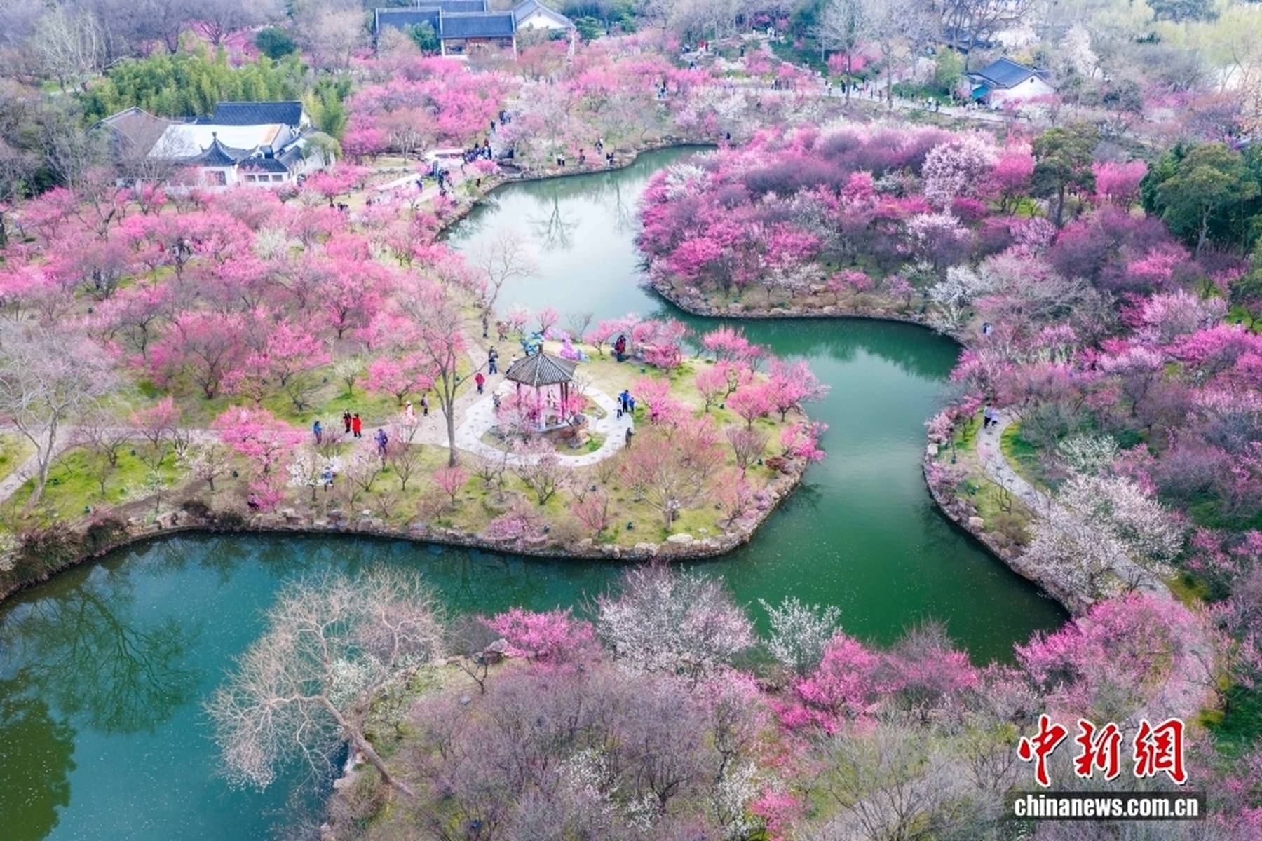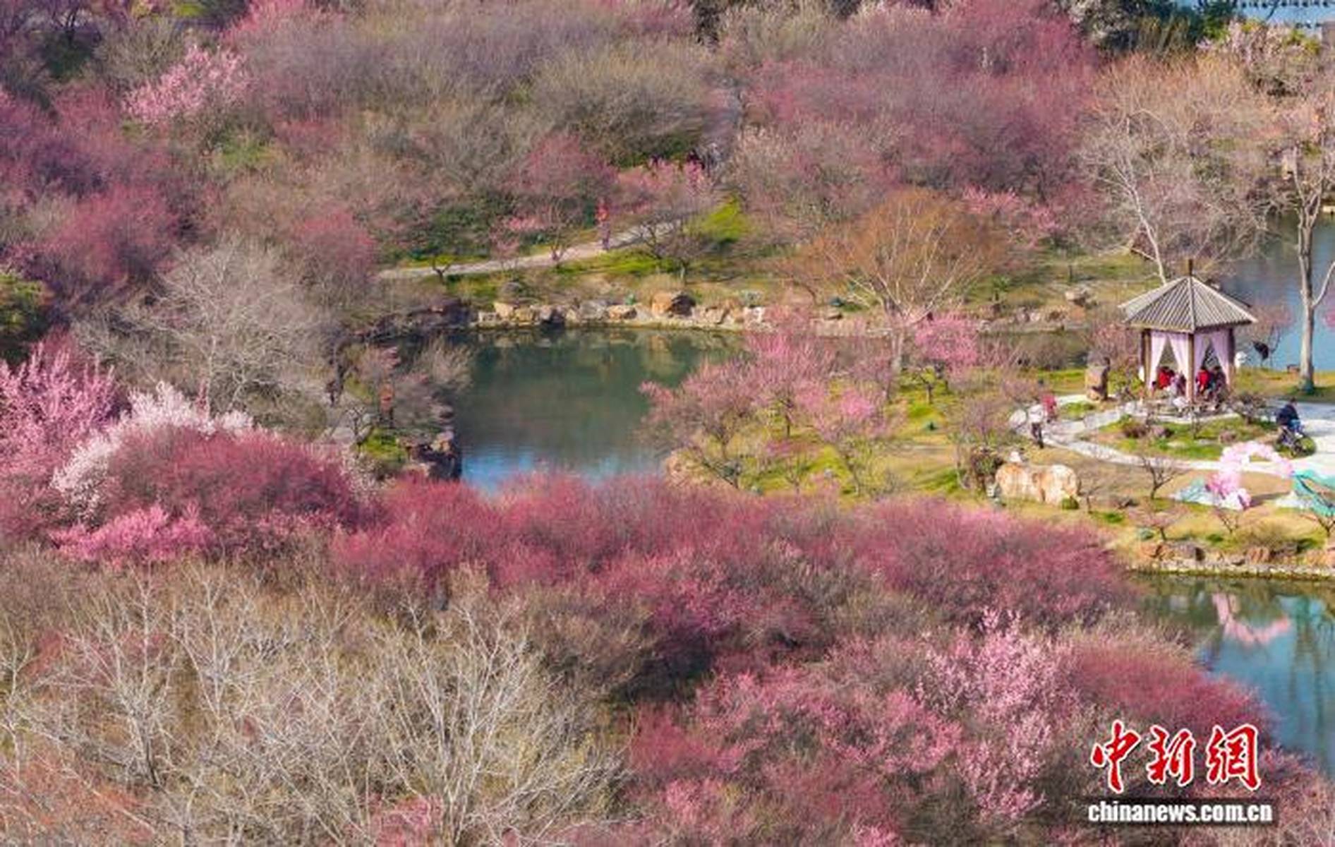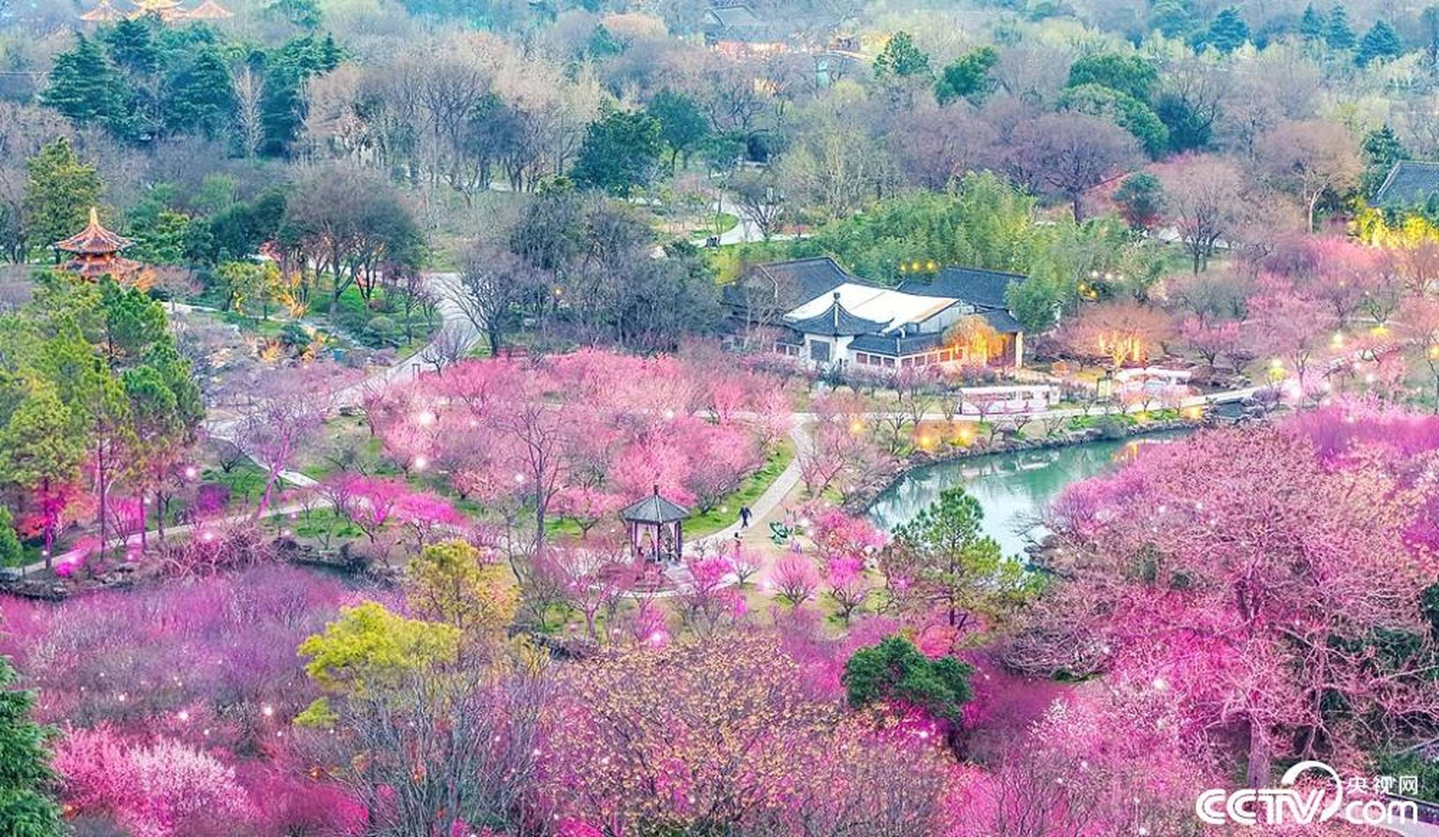 到了3月,瘦西湖的春色愈发浓郁。3月7日,空中俯瞰,“湖上梅林”迎来了最佳观赏期,万株梅花临水而开,仿佛给瘦西湖披上了一层粉色的轻纱,满城都沉浸在醉人的春色之中。3月8日,梅花盛开的美景达到了极致,粉红花海与碧水亭台相得益彰,如诗如画,引得游客们纷纷前来踏青赏春,沉醉在这如梦如幻的美景中。