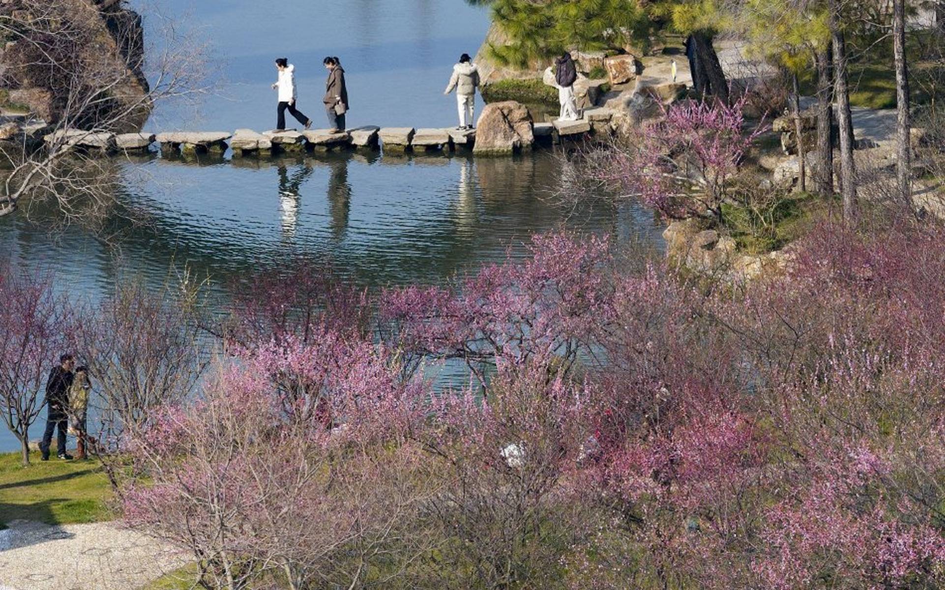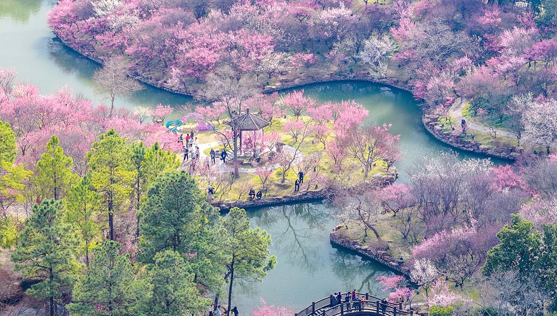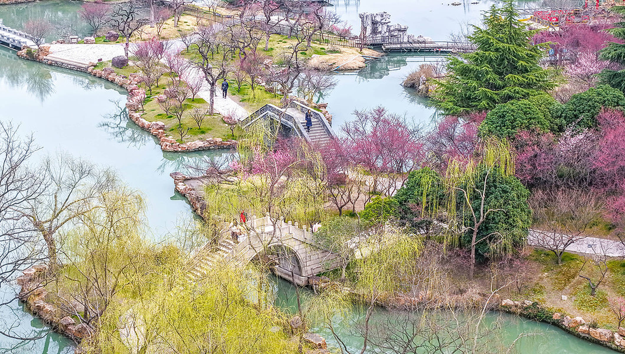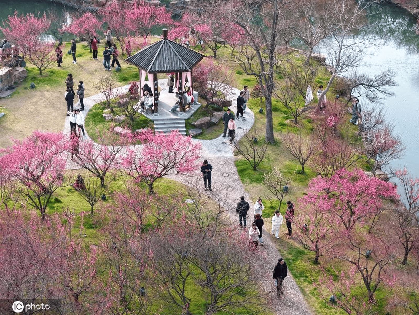 到了3月,瘦西湖的春色愈发浓郁。3月7日,空中俯瞰,“湖上梅林”迎来了最佳观赏期,万株梅花临水而开,仿佛给瘦西湖披上了一层粉色的轻纱,满城都沉浸在醉人的春色之中。3月8日,梅花盛开的美景达到了极致,粉红花海与碧水亭台相得益彰,如诗如画,引得游客们纷纷前来踏青赏春,沉醉在这如梦如幻的美景中。