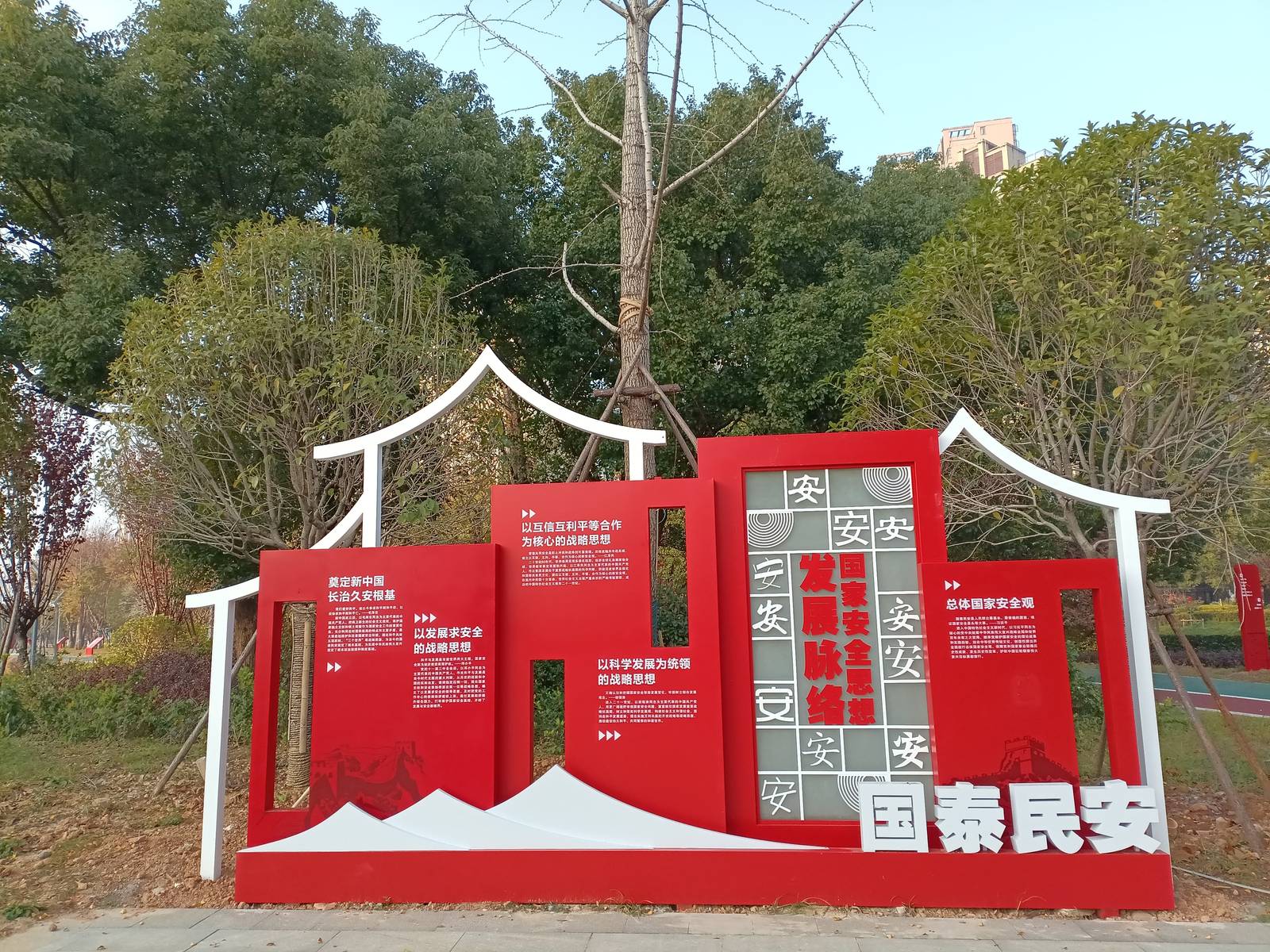 总体国家安全观吉安市主题公园是吉安独具特色的一座公园。它将国家安全观与公园景观有机融合,通过设置各种宣传展板、雕塑等,向市民普及国家安全知识,提高市民的国家安全意识。这座公园不仅是一个休闲娱乐的场所,更是一个重要的宣传教育基地,为吉安的城市建设和社会发展做出了积极贡献。