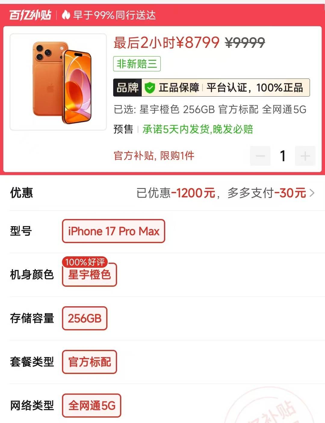 但问题来了,一台原本让很多人觉得“太贵了,算了”的手机,一旦价格从9999元拉到8799元,味道就完全不一样了。尤其还是256GB版本首发就补贴1200元,这种降幅对于苹果来说已经相当有冲击力。很多人买手机,纠结的从来不是产品好不好,而是值不值。iPhone 17 Pro Max如果原价看,确实还是贵;可一旦进入补贴价区间,它的竞争力马上就上来了。因为你买到的不是某一个单项参数特别夸张的手机,而是一台屏幕、性能、拍照、续航几乎没有明显短板的水桶型旗舰。