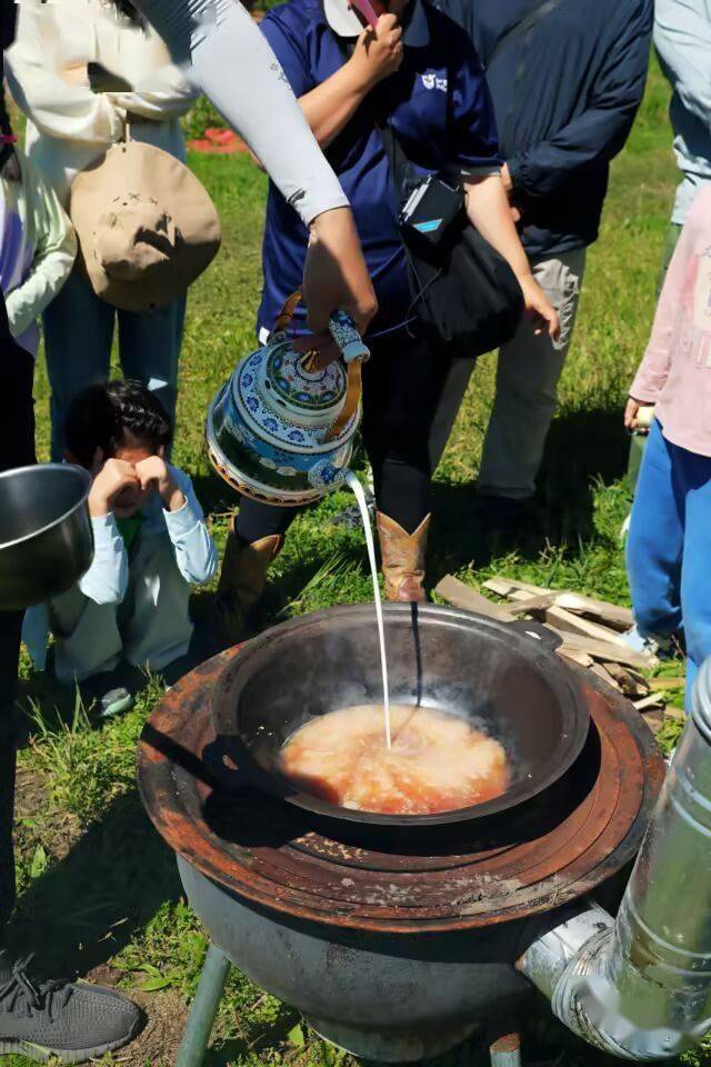 游牧民族体验:走进私家牧场,大人和孩子换上蒙古袍,参与捡牛粪、熬咸奶茶、吃手把肉等活动,晚上住进特色蒙古包,让孩子真正做一回游牧民。参加小小那达慕草原运动会,学习射箭、摔跤,感受蒙族人的精神。