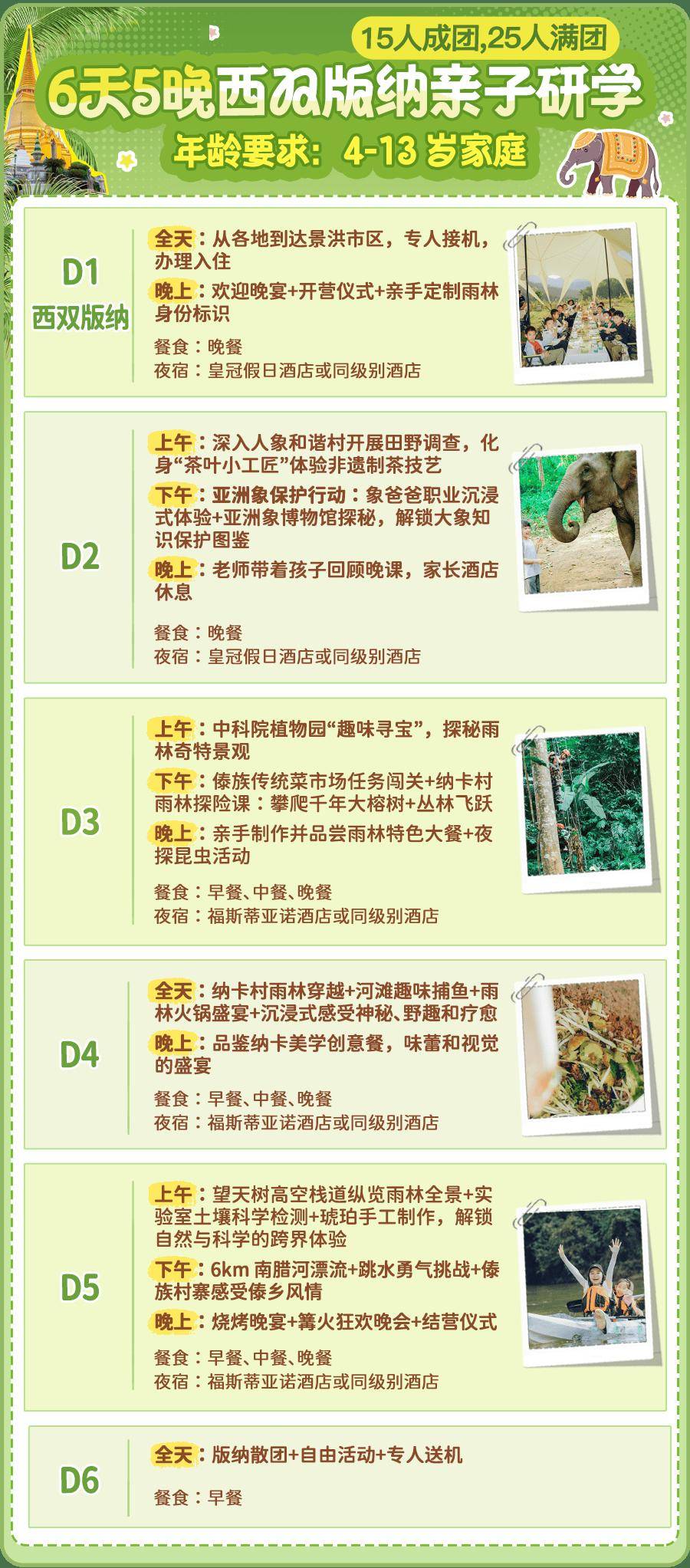 游加为粉丝定制的西双版纳亲子营是 6 天 5 晚的行程,五一和暑假出行都很合适。这条线路围绕多个主题展开,将课程、任务、互动、挑战和亲子共同体验完美结合,让孩子在玩中学、学中记得住。