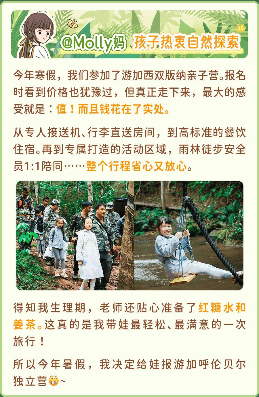 眼看清明将至,五一、端午小长假也在不远处招手,暑假的脚步更是日益临近。今年不少城市还为孩子们增设了“春假”,这可把妈妈圈给“点燃”了,大家都在热烈讨论“带娃去哪儿玩”。在众多亲子旅行目的地中,西双版纳和呼伦贝尔脱颖而出,成为妈妈们心动清单上的常客。而游加亲子研学营精心定制的一南一北两条精品线路,更是为妈妈们解决了带娃出行的诸多烦恼,让亲子旅行变得轻松又有趣。