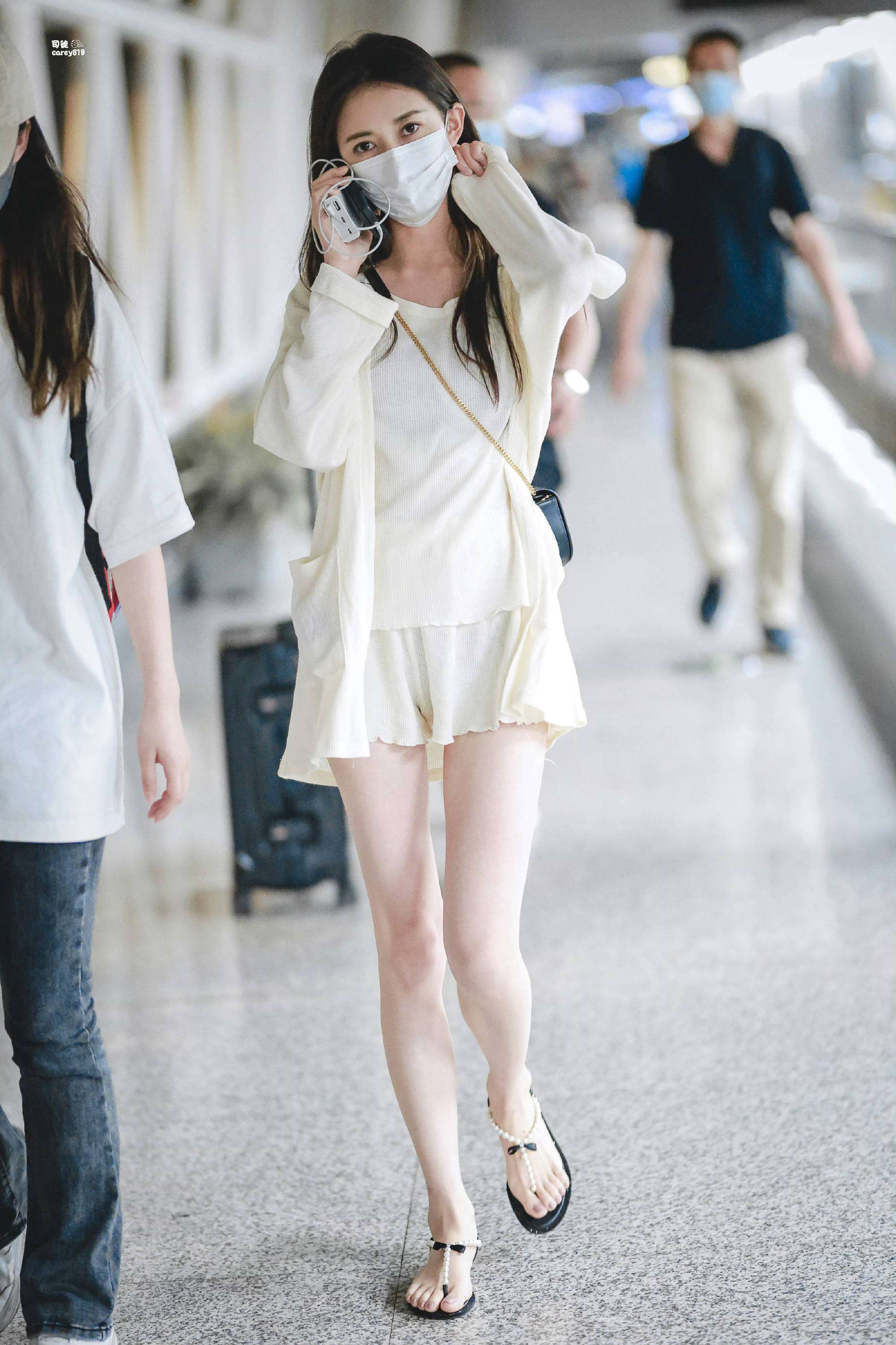 陈钰琪的机场造型,再次引起了全网的热议!谁能想到,一条普通的牛仔裤,在她的巧妙搭配下,竟然被改造成了两段式的穿法——上半部分当短裤,露出她那纤细得几乎让人不敢相信的大腿,而下半部分则被拉伸至小腿,像穿上了一双牛仔袜。这种看似挑战的搭配不仅没有出错,反而让她本就细长的双腿更加修长,简直就像两根细竹竿,让网友忍不住调侃:风一吹,都怕断了。作为唐嫣旗下的颜值担当,陈钰琪的身材管理一直是娱乐圈的标杆,简直成了许多人追求的目标。早前她穿着XS码的白色短裤亮相,身形曲线引发了热议。即便官方资料上显示她的体重只有80斤,短裤的裤腿依旧松垮,膝盖处还能塞进去一个拳头,网友们戏谑道:这腿比我胳膊还细,真是让人怀疑她是不是只有40斤。