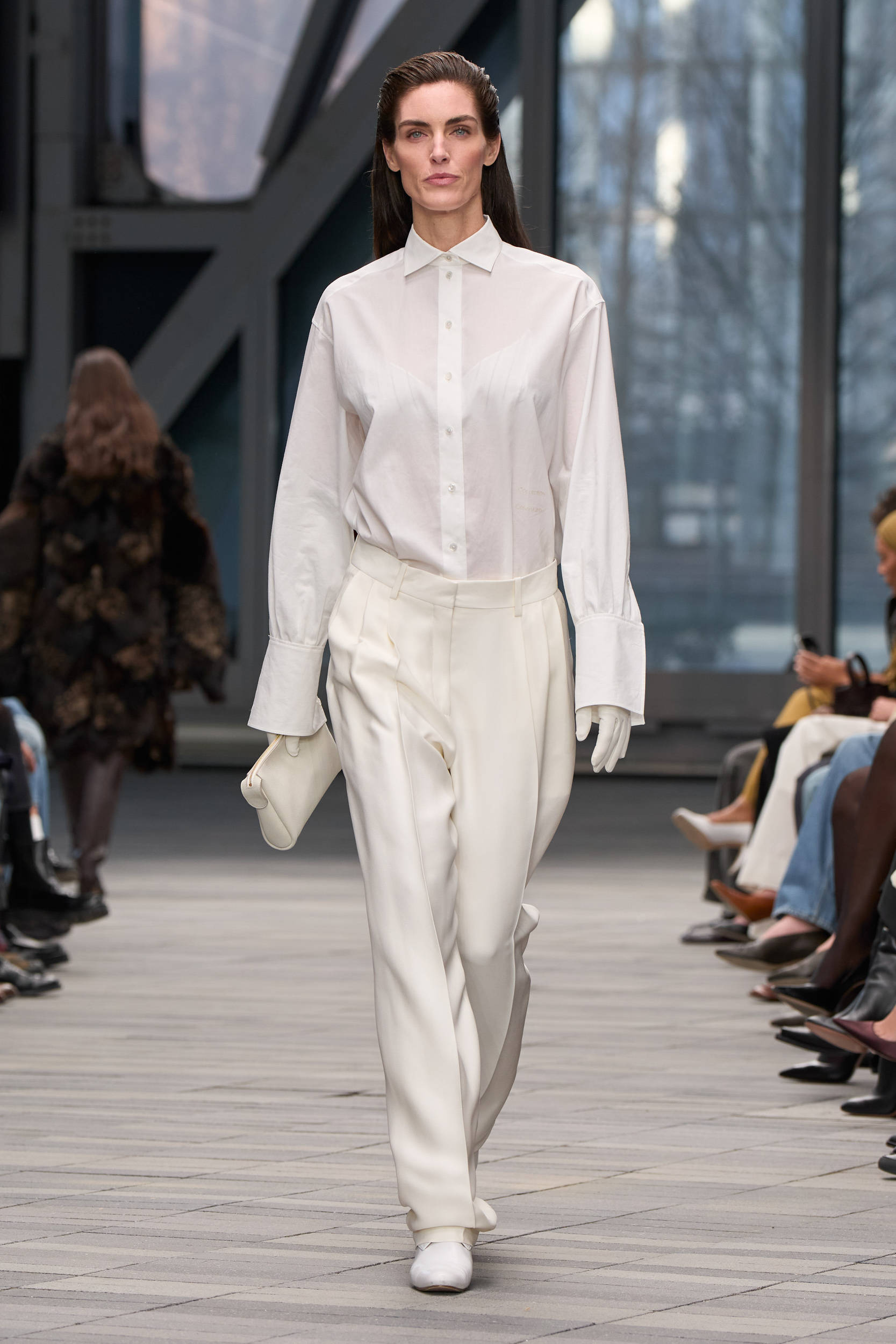 Calvin Klein 2026秋冬秀场,白衬衫+白裤,全白的LOOK演绎了最简约的高级感。
