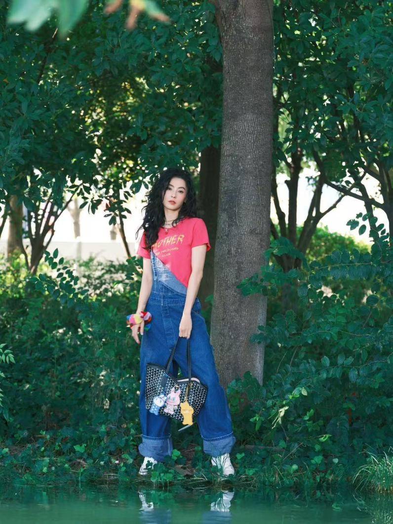 整体穿搭给人的第一印象是随性休闲,仿佛随手抓了件T恤和背带裤就出门,但细节之处却充满巧思。白色运动鞋中和了色彩搭配,既清爽又不显杂乱,让减龄效果自然显现,而不会流于稚嫩。