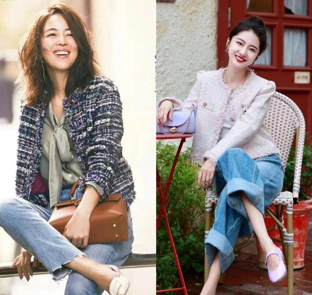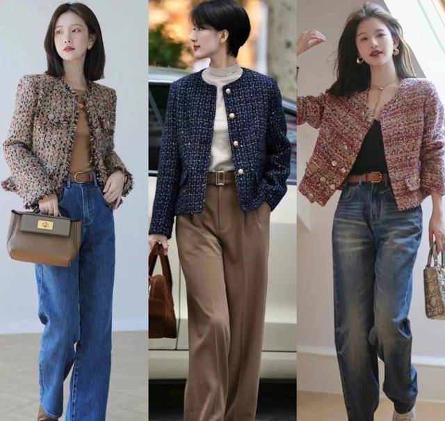 1. 风格调整:小香风最劝退人的是容易穿得像去面试,把“隆重”拆一半就行。上身粗花呢,下身破洞牛仔,脚踩一双脏脏的德训鞋,珍珠耳环只戴单边,这种混搭风格既保留了小香风的优雅,又增添了一份随性与时尚。