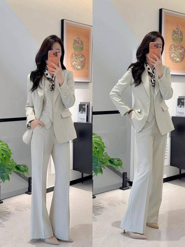 卡其色西装 + 白裤 = 经典职场搭配