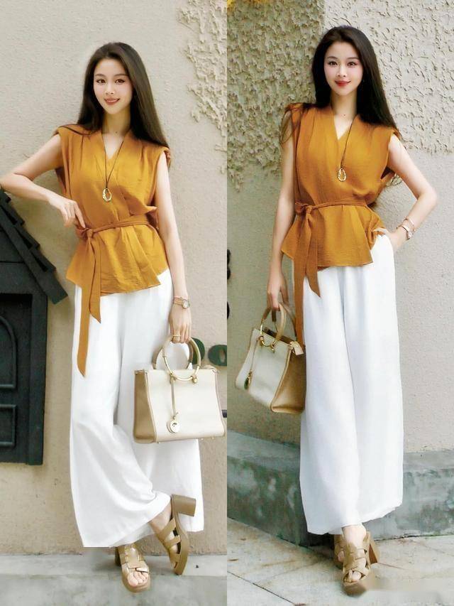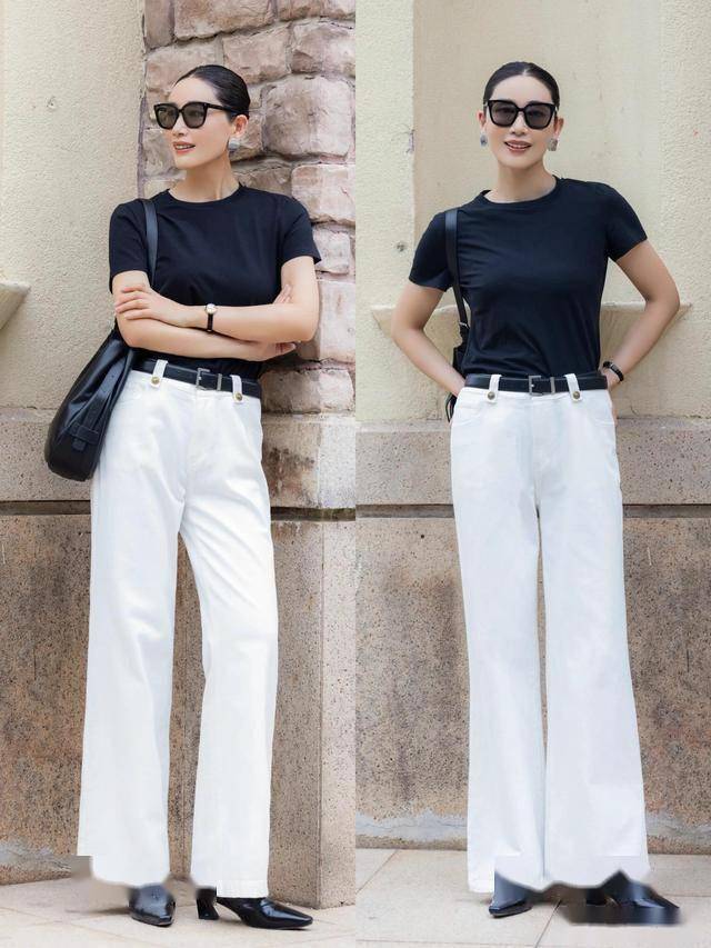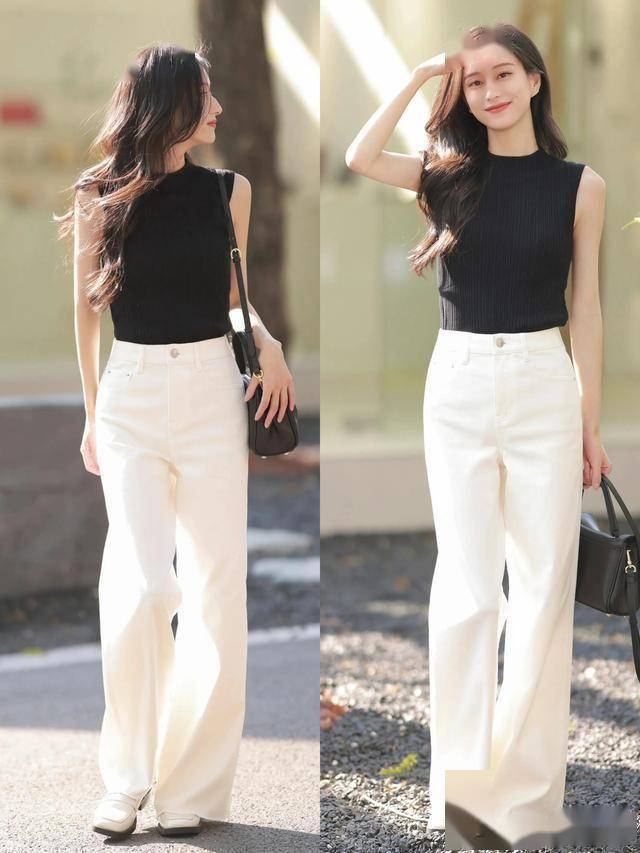 黑色短上衣 + 白裤 = 藏肉显高,适合有小肚腩的姐妹