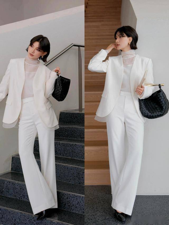 黑色西装 + 白色阔腿裤 = 气场全开