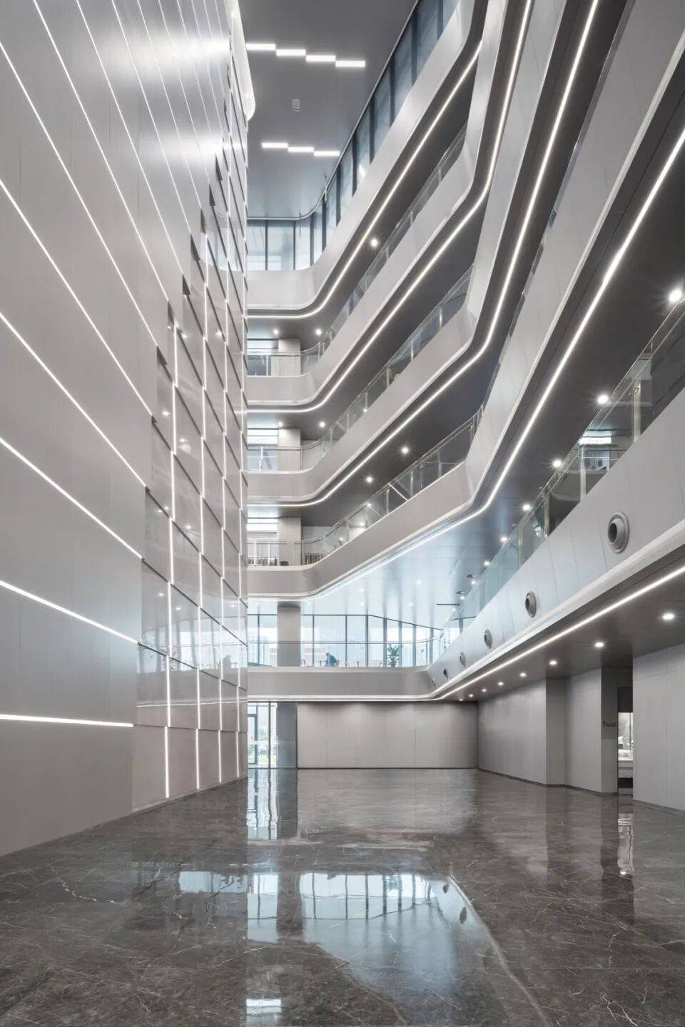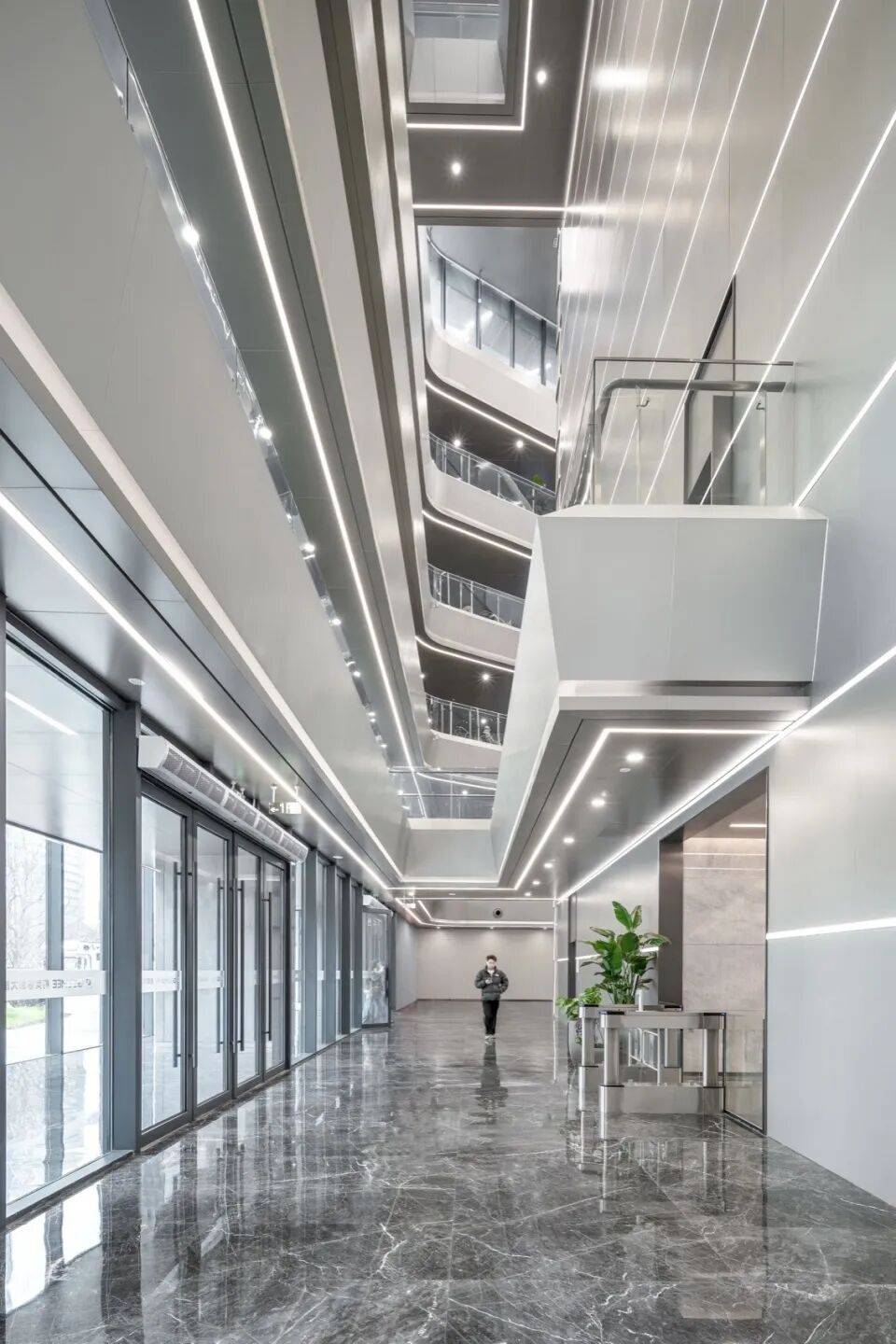 室内中庭:大堂围绕核心筒打造通高空间,模拟“溶洞峡谷”地貌,增强空间启发性与仪式感。