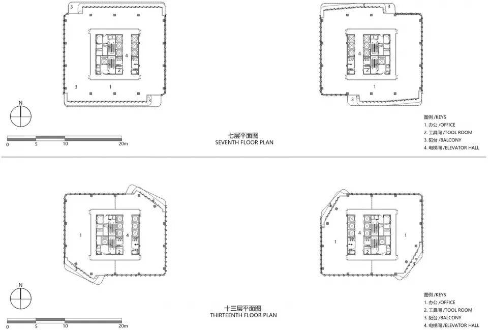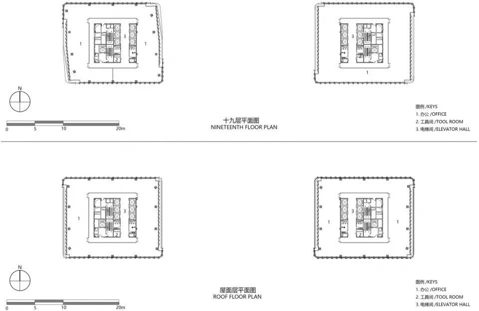 界面衔接:塔楼与裙房幕墙分界线向下延续至地面景观,形成流畅的建筑-场地动态衔接。