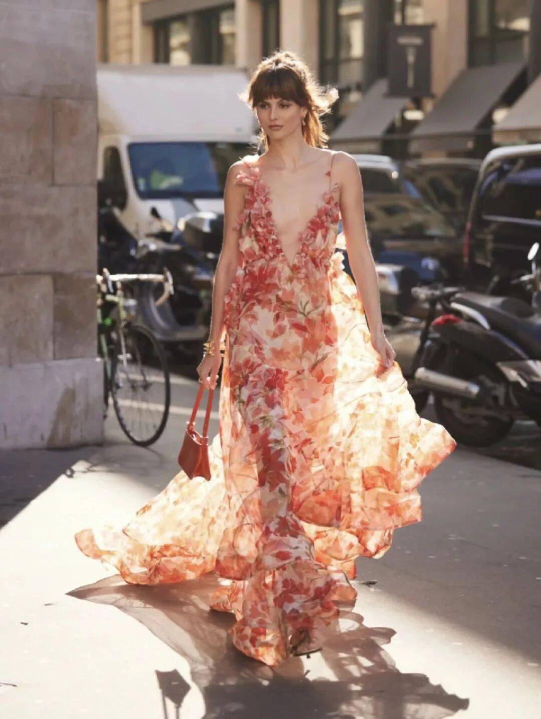 迪丽热巴:时装周花朵半裙造型,阳光映照下浪漫迷人