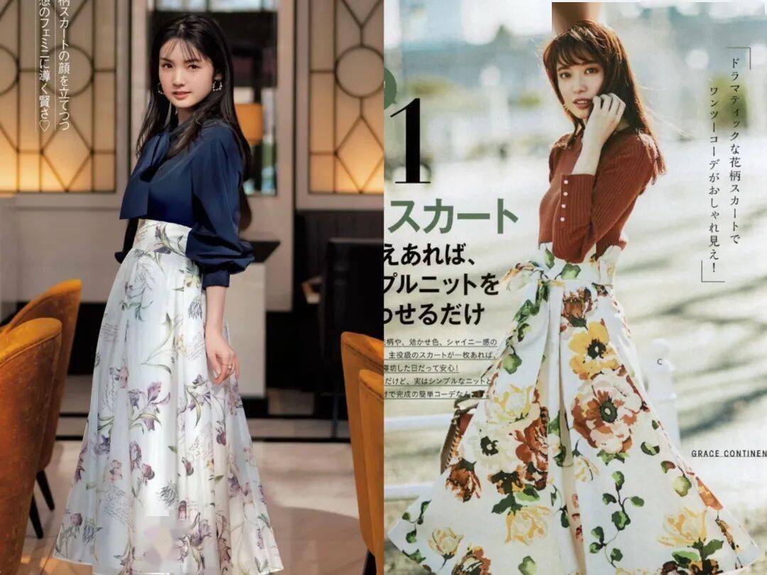 花朵半裙 格桑花、樱花、杜鹃花印花 日常通勤、约会