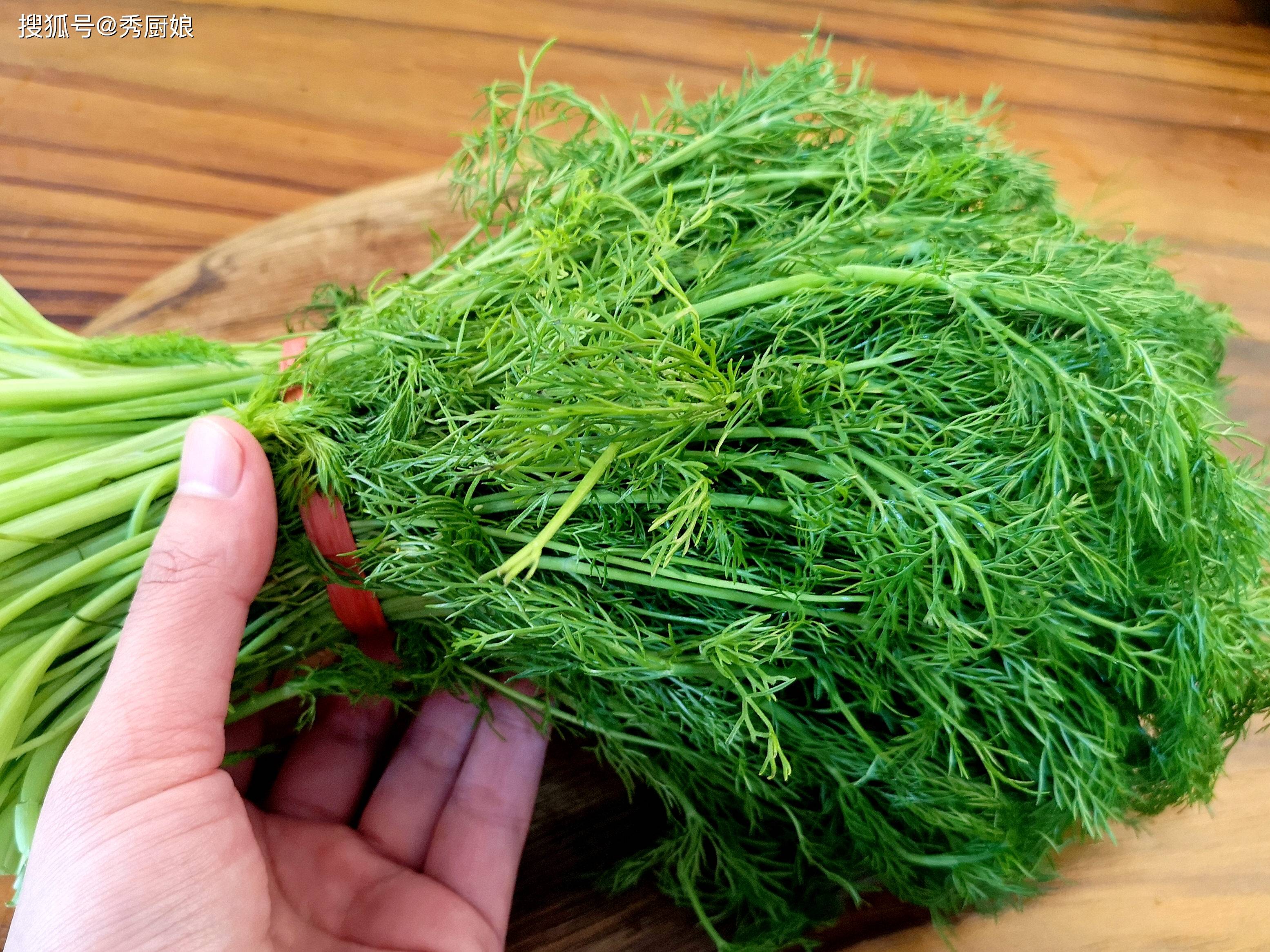 茴香菜可能有些人不太熟悉,它在北方比较常见,叶子细细碎碎的,像一把把小梳子,凑近一闻,有一股很特别的清香味,像八角又没那么冲,是一种温和的、让人很舒服的香气。