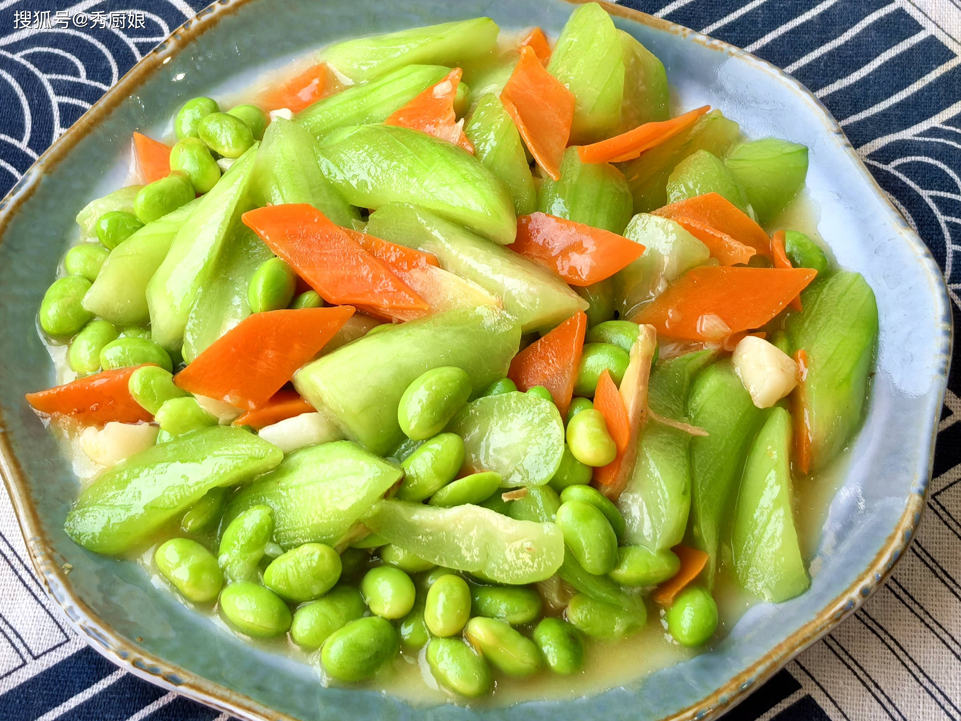 推荐食谱:丝瓜胡萝卜炒毛豆