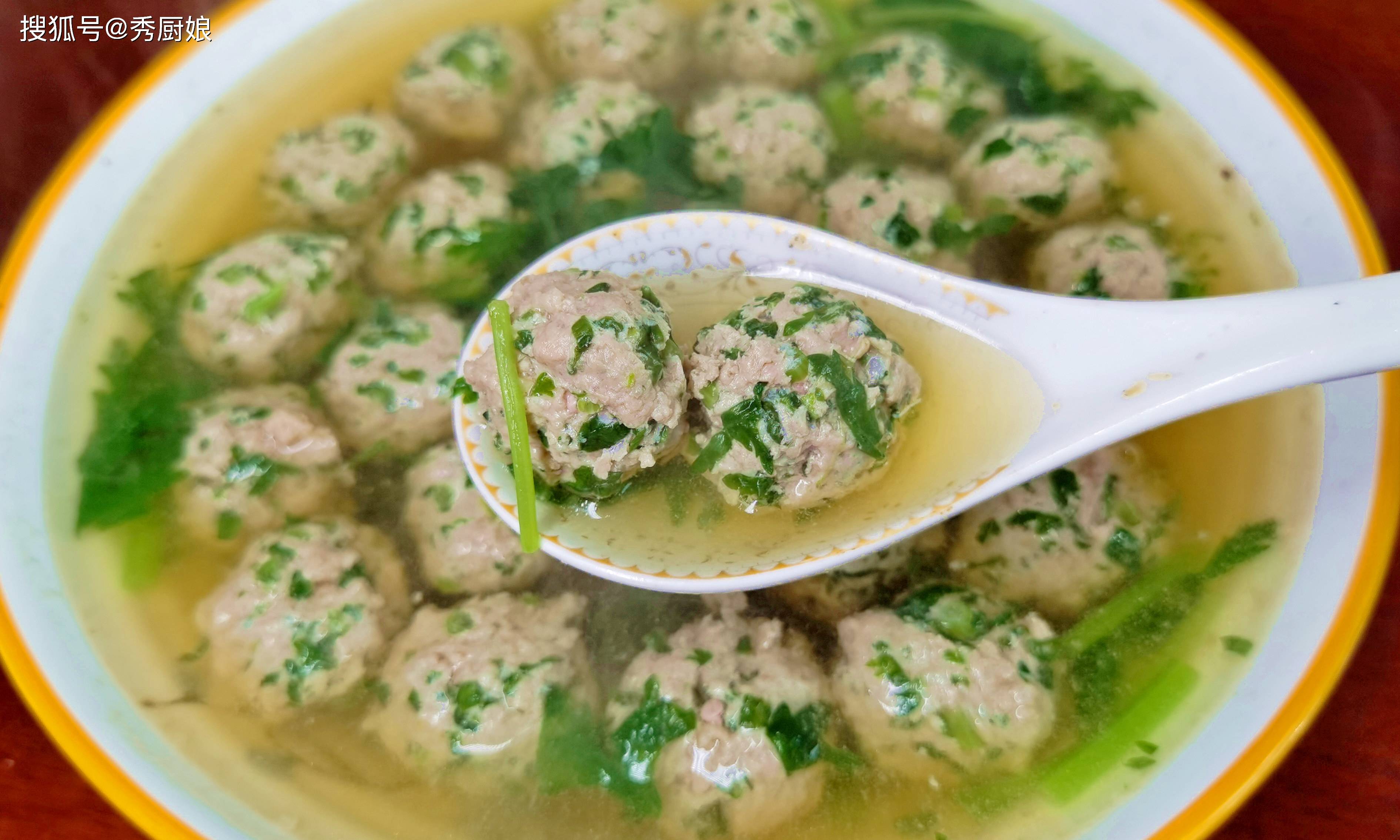 这碗汤真的特别鲜!肉丸里融入了茼蒿的清香,吃起来一点也不腻;汤里的茼蒿软滑清口。喝上一碗,从喉咙一直舒服到胃里,感觉全身都通透了。