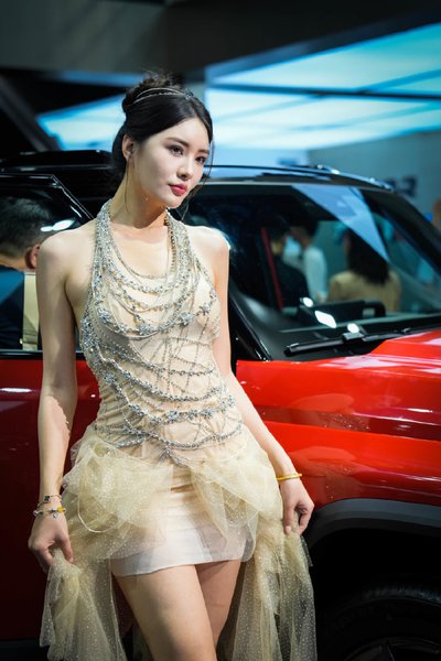 本届车展几乎每个展台都有车模,颜值被认为超过北京、上海、广州车展