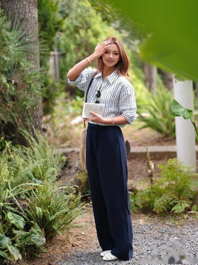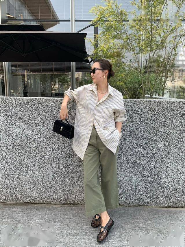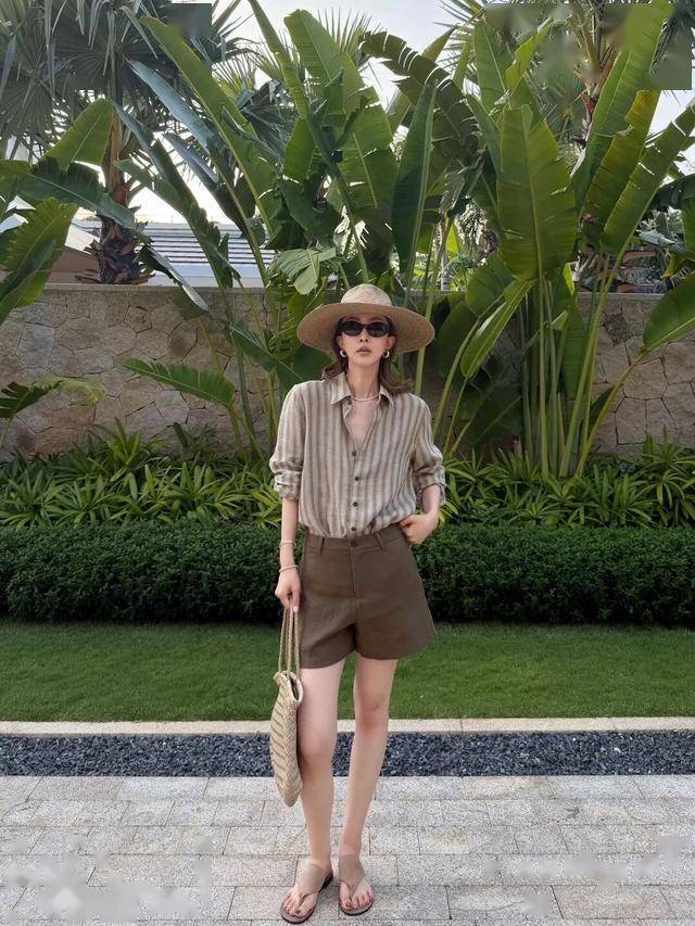 上衣 浅色短袖衬衫、条纹T恤、碎花吊带 选择棉麻材质,透气舒适