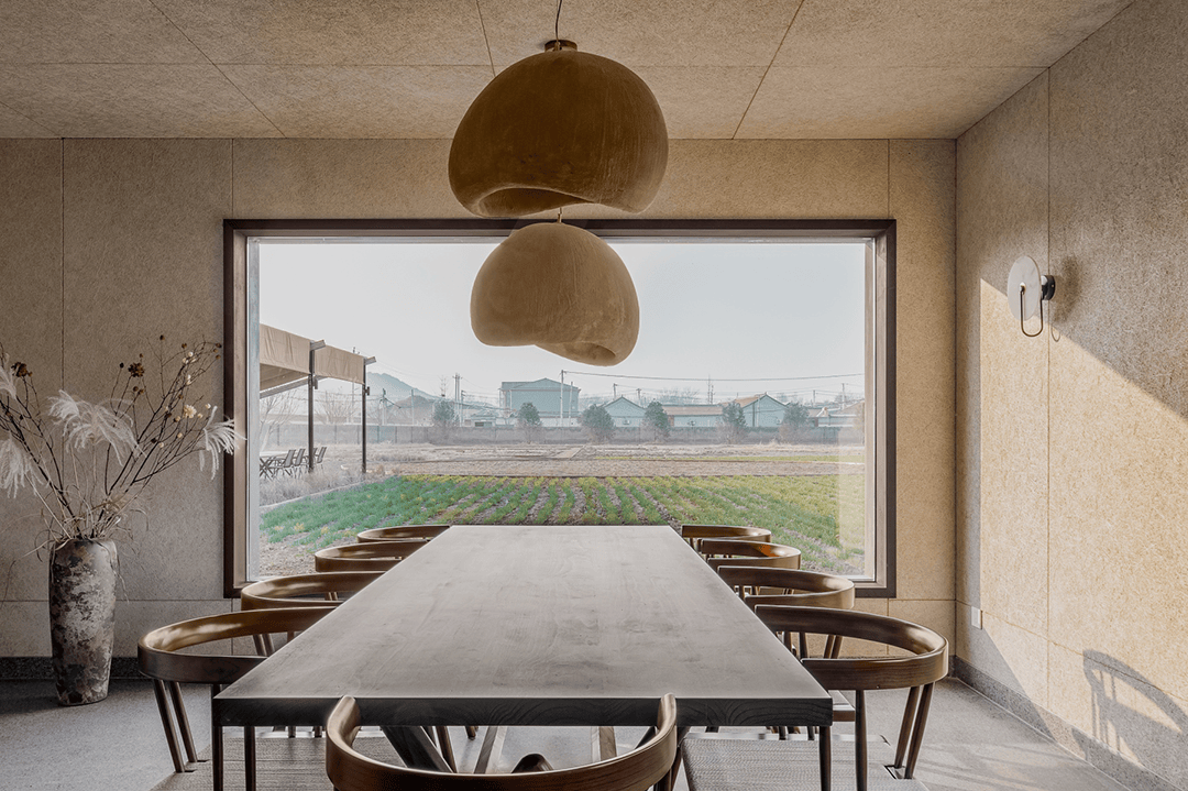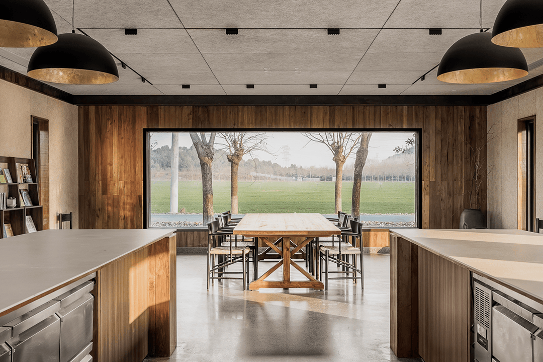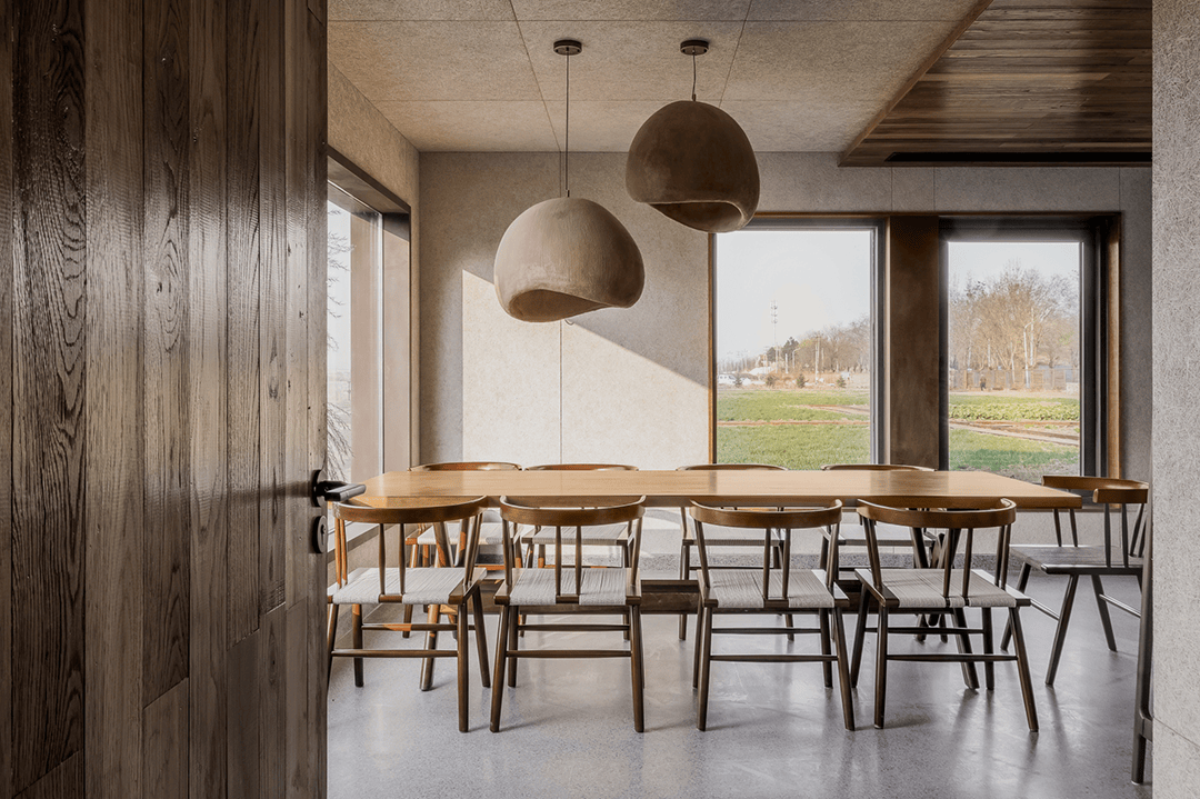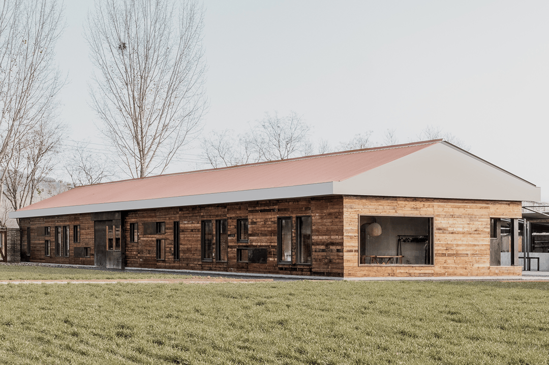 主体建筑采用回收旧木与夯土墙,降低碳排放的同时呼应农耕文化;