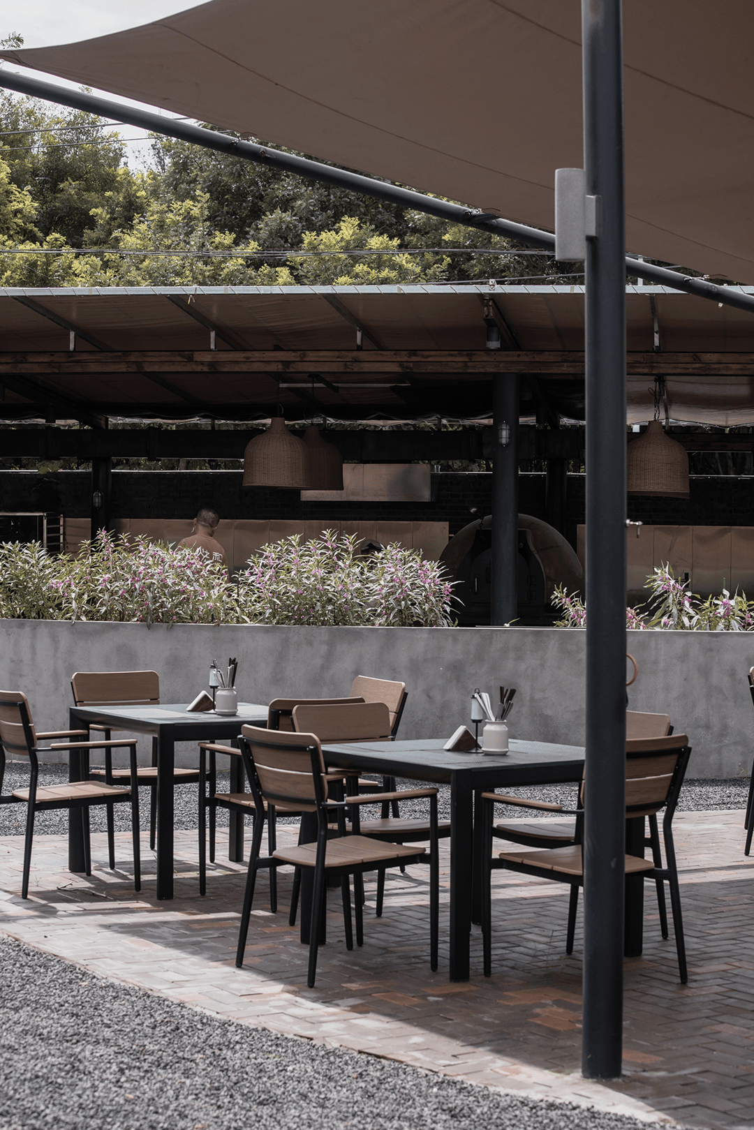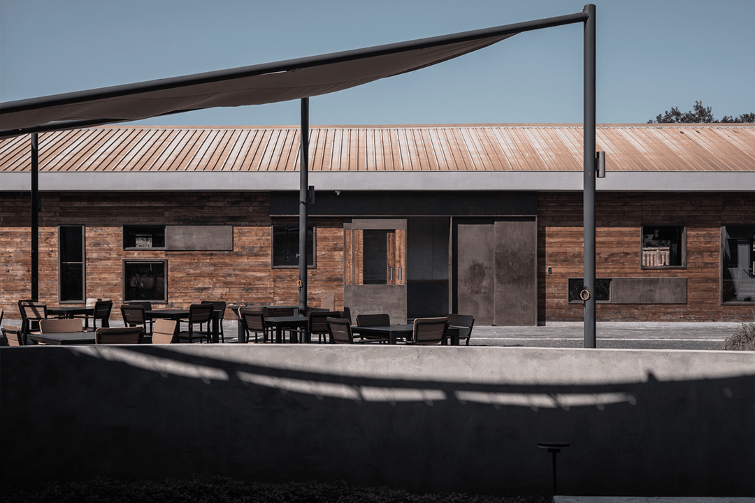 餐饮区家具使用农场废弃木材与石材制作,实现“零废弃”理念。