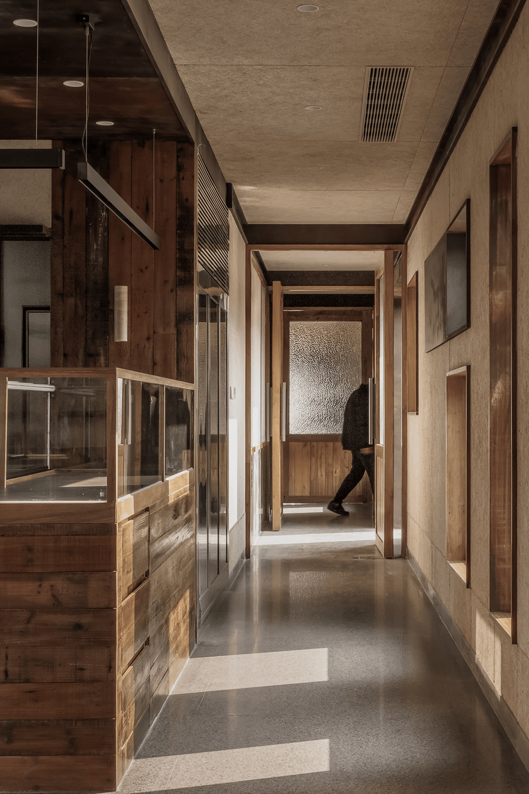 内部通过弧形墙面与木质台阶引导动线,模拟传统院落的“廊道-庭院”序列,营造“曲径通幽”的仪式感。