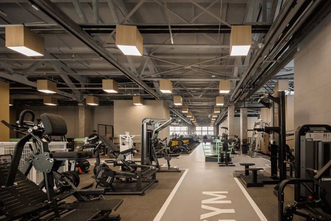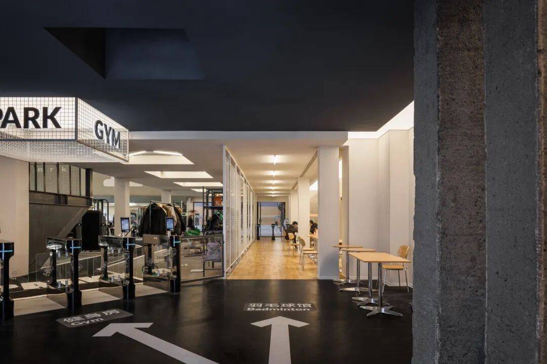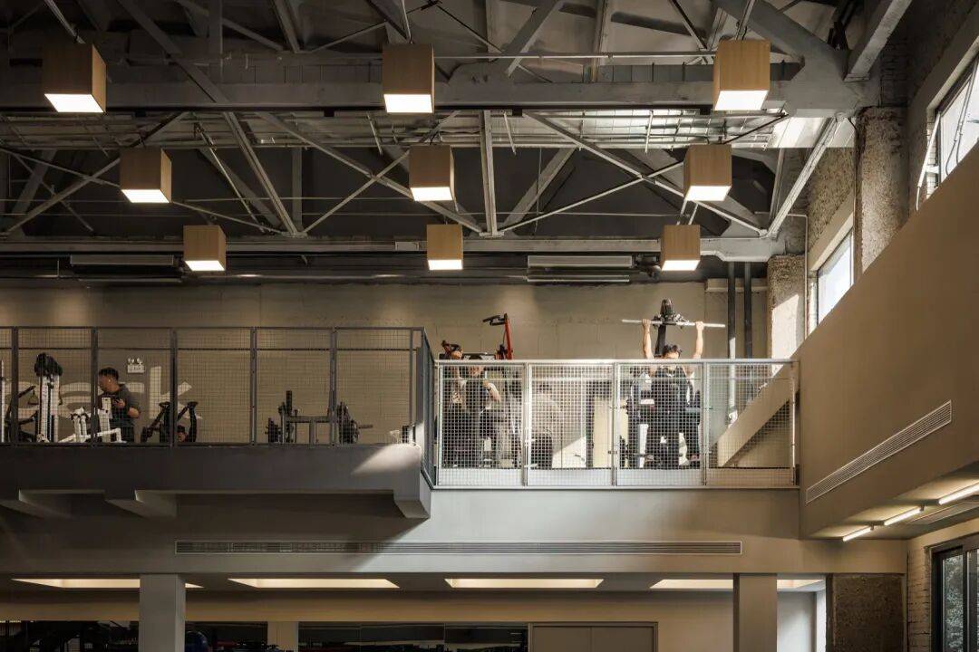 挑战应对:厂房11米挑高、结构柱多、功能复杂,设计以“身体的反应实验室”为概念,模拟肌肉撕裂与重建、体能质变的过程。