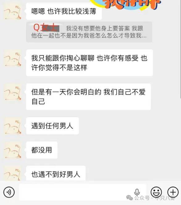 图片而在2天前的3月15日,张婉婷还和Q女士推心置腹的交心呢……Q女士问张婉婷,之前有没有预感到宋宁峰“外面有人”,张婉婷的意思是并不知道Q女士的存在。
