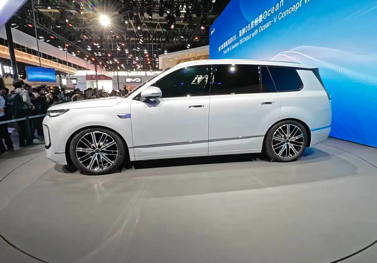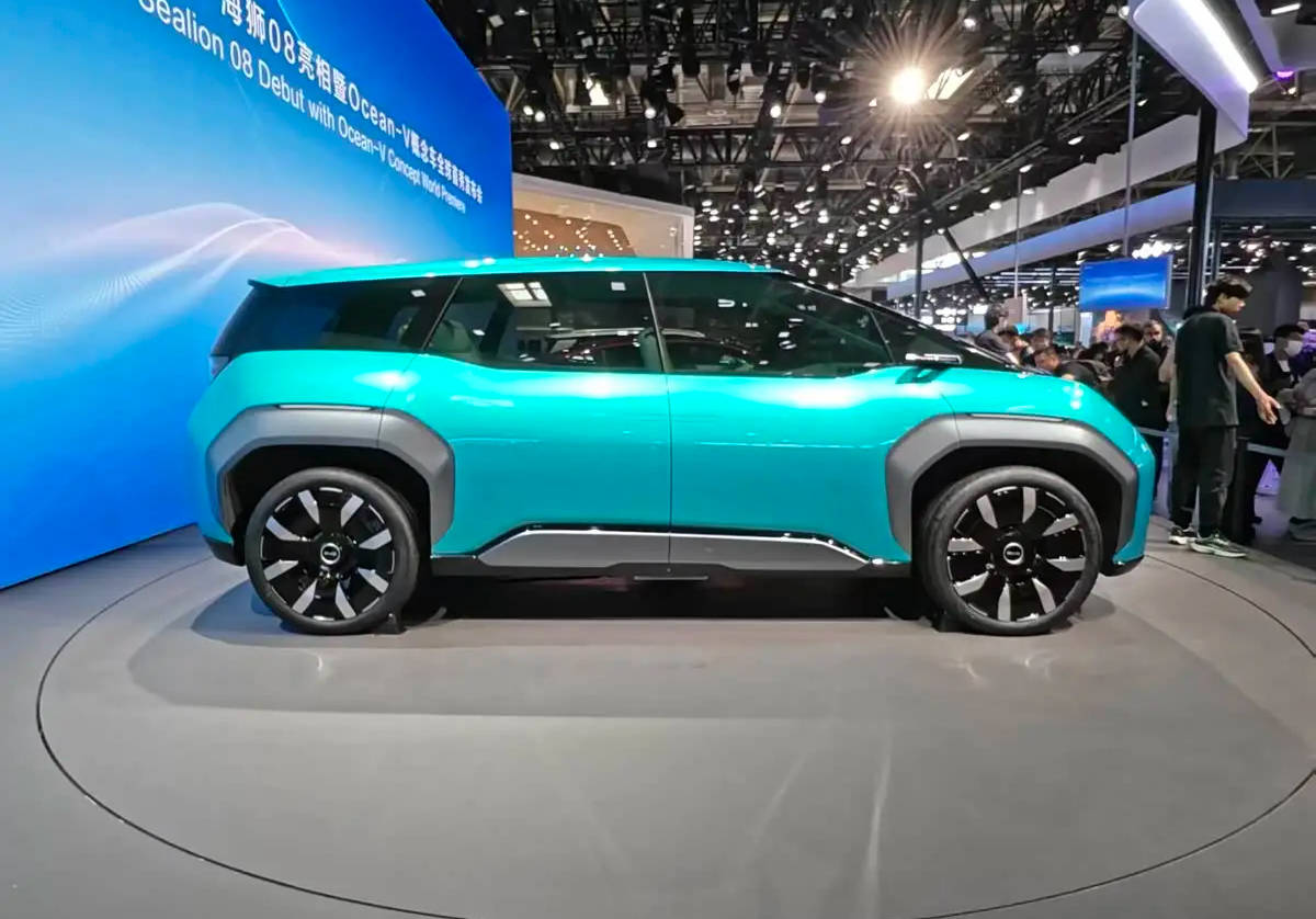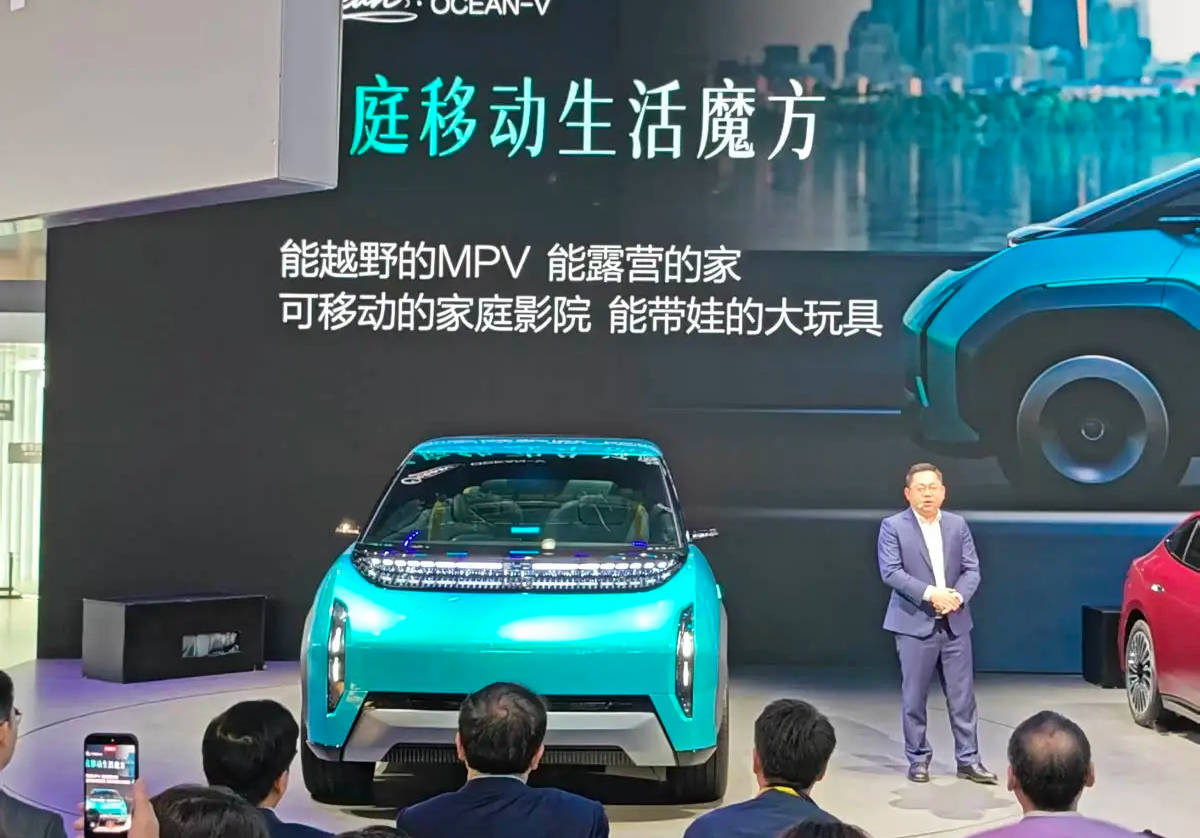 比亚迪海洋Ocean-V概念车也首发亮相,新车采用更加前卫的设计,整体造型饱满动感,其展现了多功能的出行交通工具,能越野、大空间、能露营、能成为家庭影院,能成为带娃的大玩具。