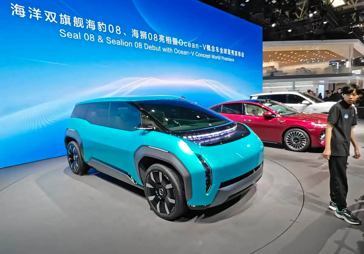 4月24日,2026北京车展正式开幕,比亚迪海洋网携多款新车亮相,包括海豹08、海狮08以及Ocean-V概念车等。海豹08、海狮08延续Ocean-S概念车的设计语言,搭载兆瓦闪充、后轮转向、第二代刀片电池等诸多比亚迪最新技术。