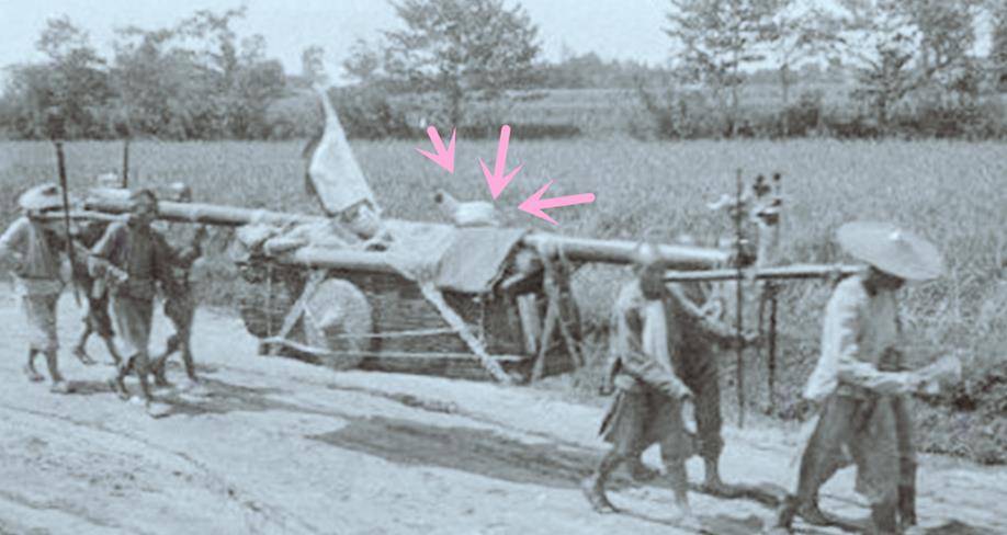 图2:1917年,灌县的街头,修女玛丽安遇到了八个抬着棺材的男人。从远处看,路人纷纷避开这些棺材。让人惊讶的是,棺材的顶端竟然站着一只白公鸡。这是当时民间的一种习俗:当人死后,会将一只大公鸡放在棺材上,叫做“送终鸡”。这个仪式的目的是引导亡灵找到通往阴间的路,送它到坟墓时就会放下鸡,让死者的灵魂顺利进入另一个世界。
