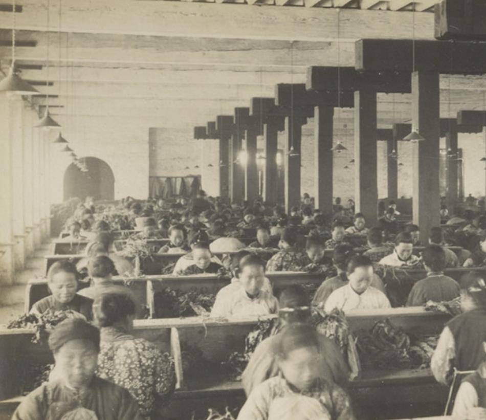 这是一组珍贵的历史照片,拍摄于1906年的武汉,记录了晚清末年英美烟草公司汉口工厂的一隅。透过这组老照片,仿佛能穿越回百年前的武汉,看到那些年工厂的忙碌景象。照片中的焦点是工厂流水线上的美丽女工,尤其是她们在那种严苛的环境中坚守岗位的身影,令人感慨。更引人注目的是那些巨大的木桶,它们是储存烟叶的容器,象征着当时工厂规模和生产力的庞大,展示了烟草工业的繁荣景象。