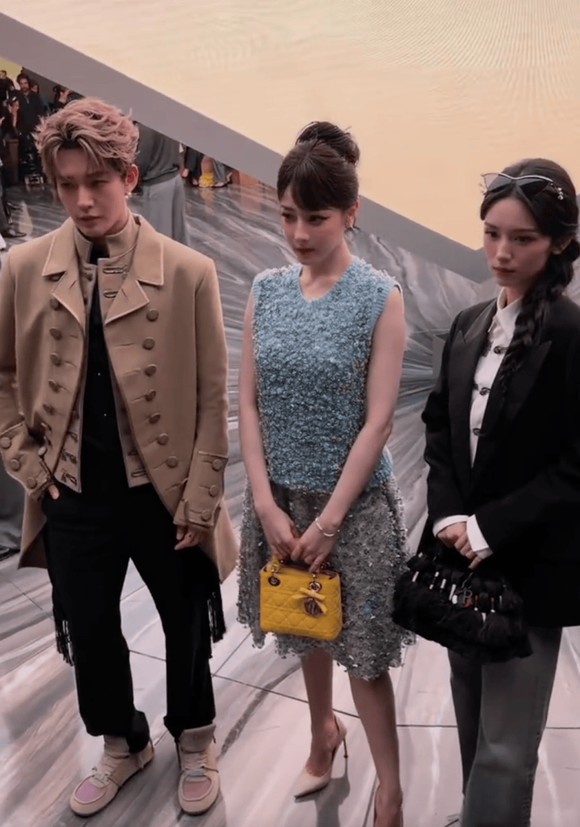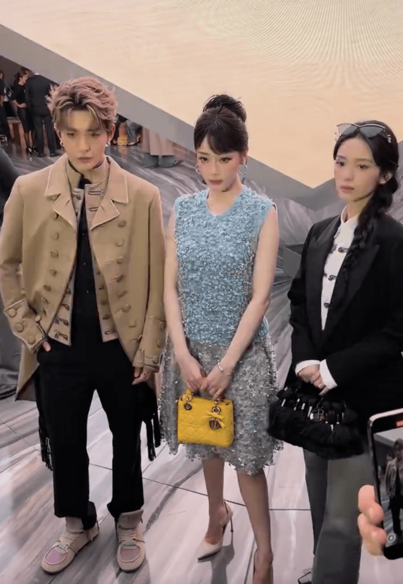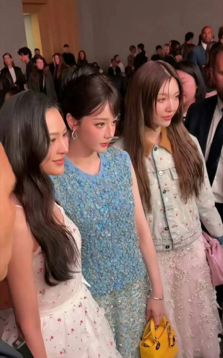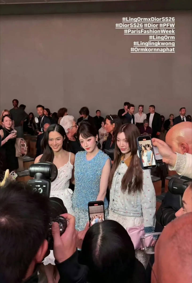 当天,迪丽热巴还在秀场内与邝玲玲、Orm Kornnaphat同框合影。