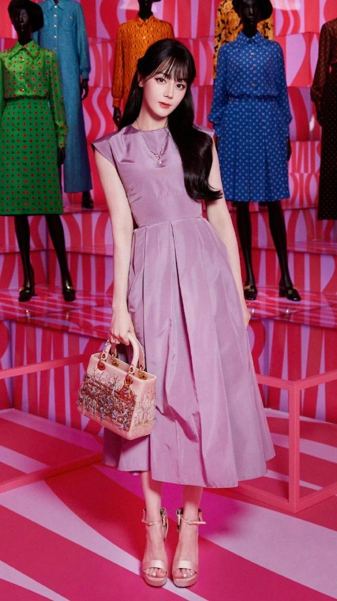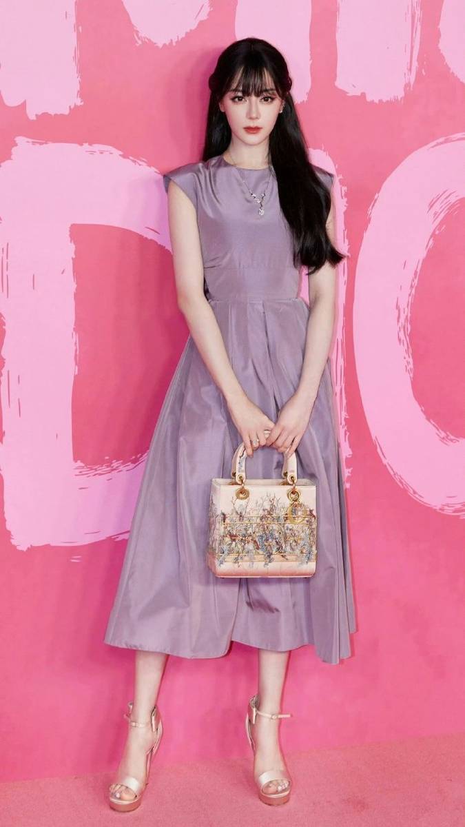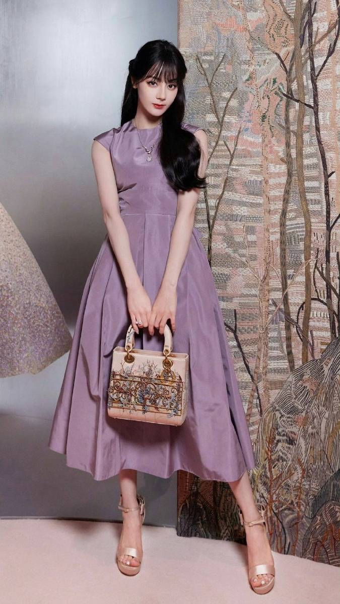 迪丽热巴Dior活动现场造型曝光,身穿紫色裙摆的高跟鞋,宛如一位高贵公主