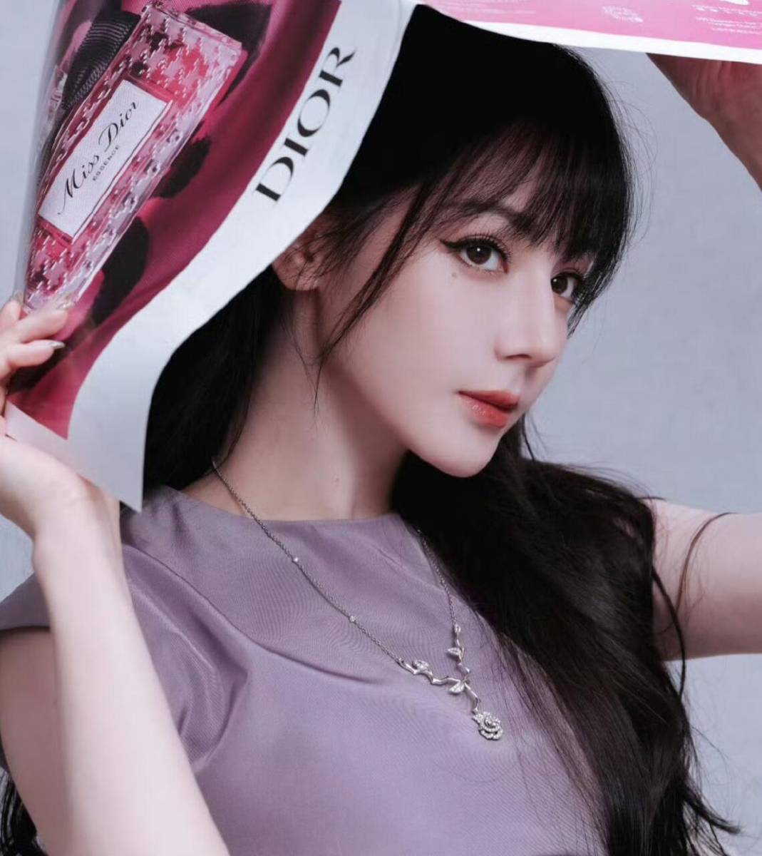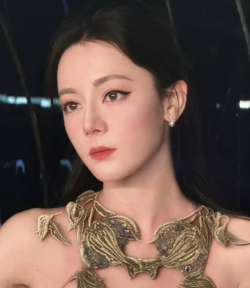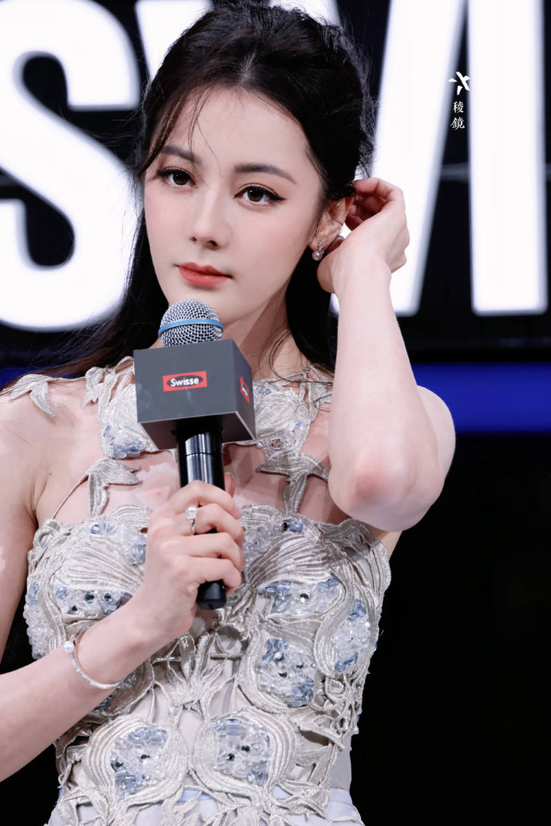 迪丽热巴侧颜精致,长长的睫毛根根分明。
