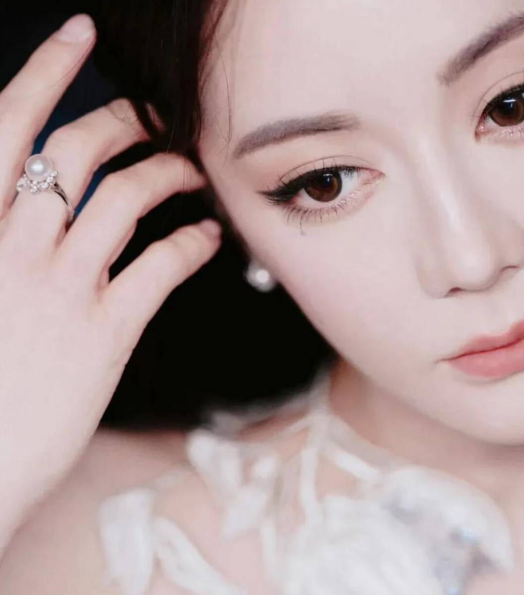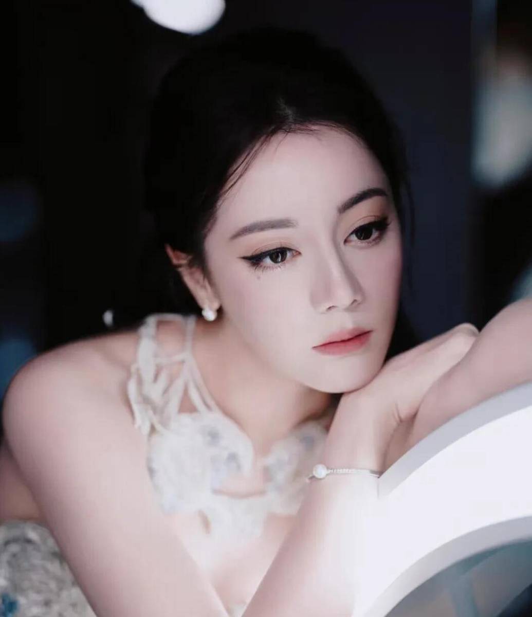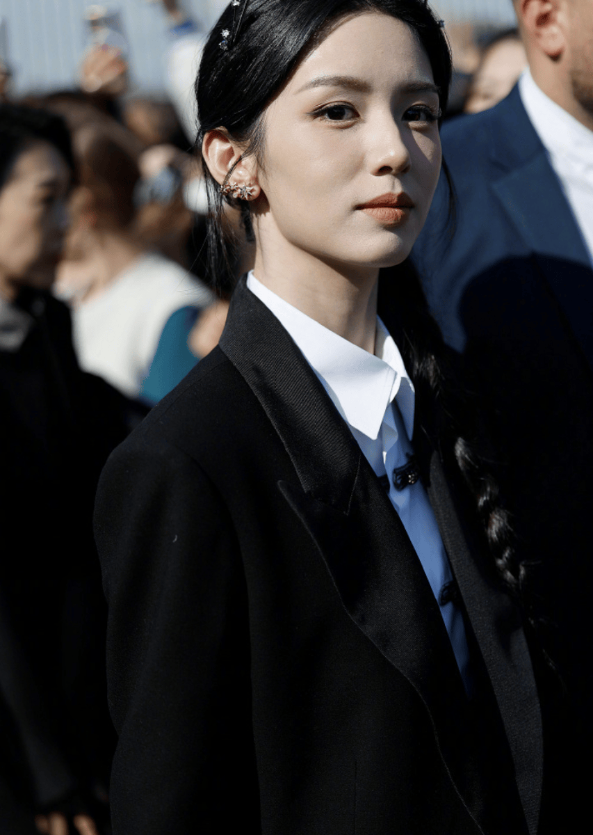 迪丽热巴侧颜精致,长长的睫毛根根分明。