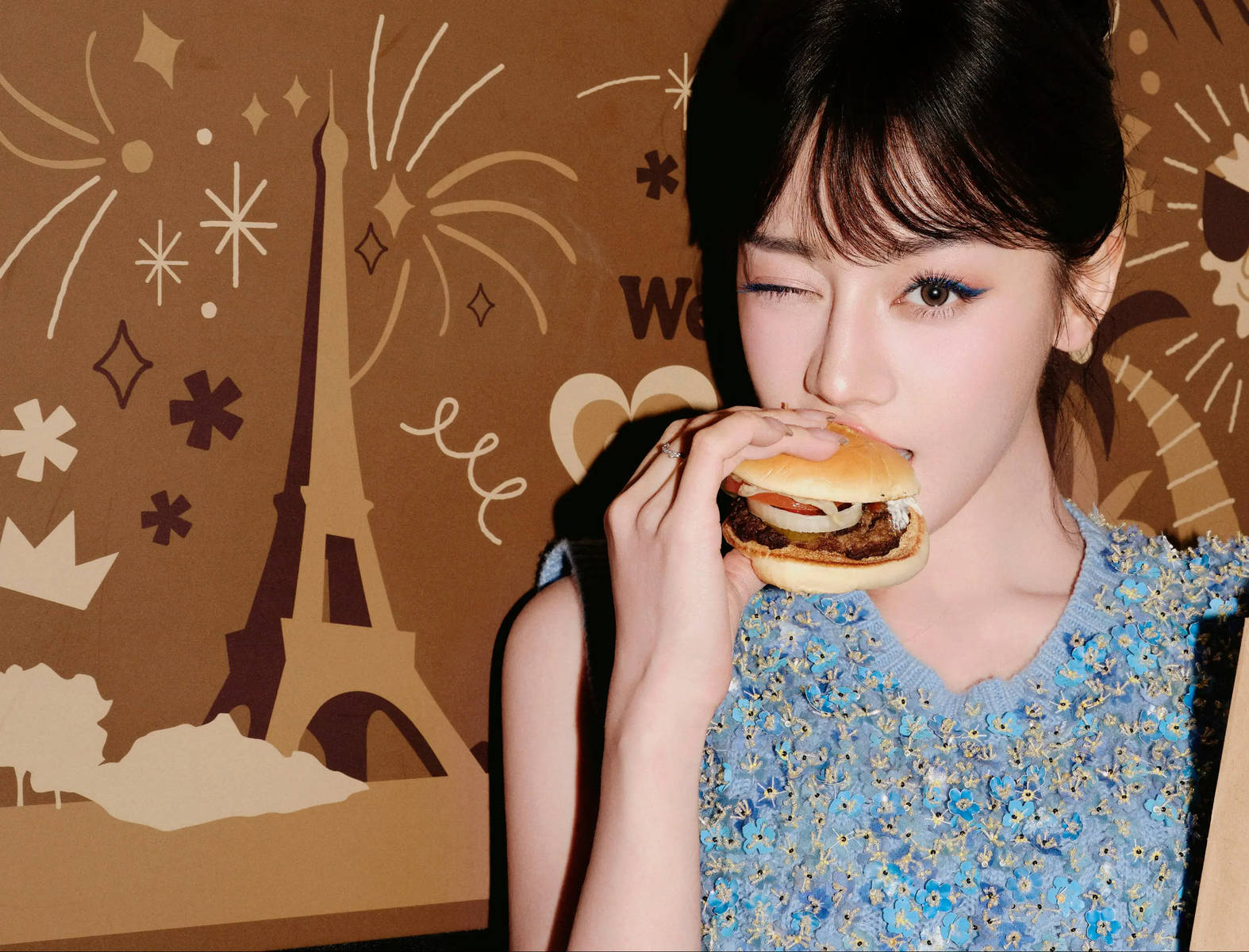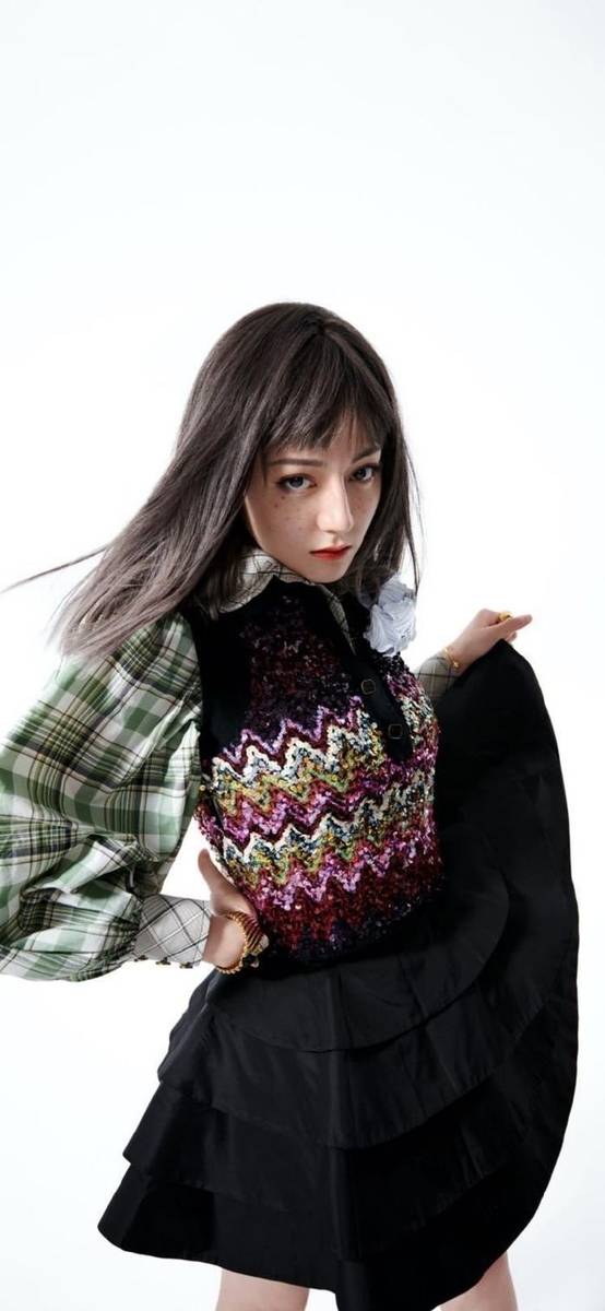 迪丽热巴对着镜头wink,十分俏皮灵动。