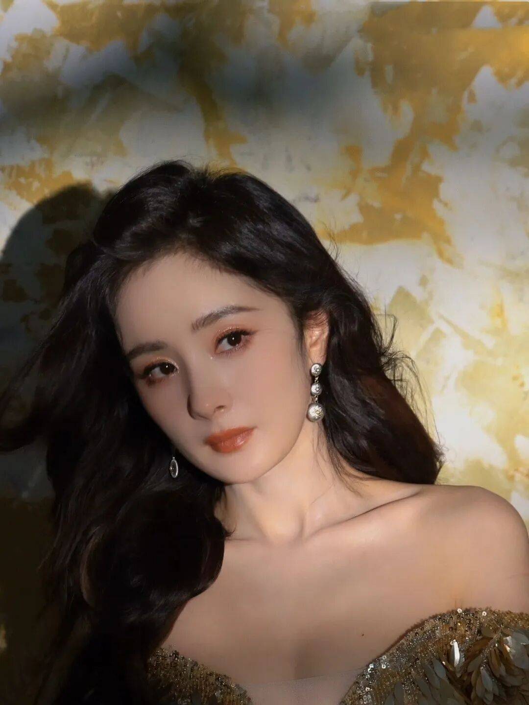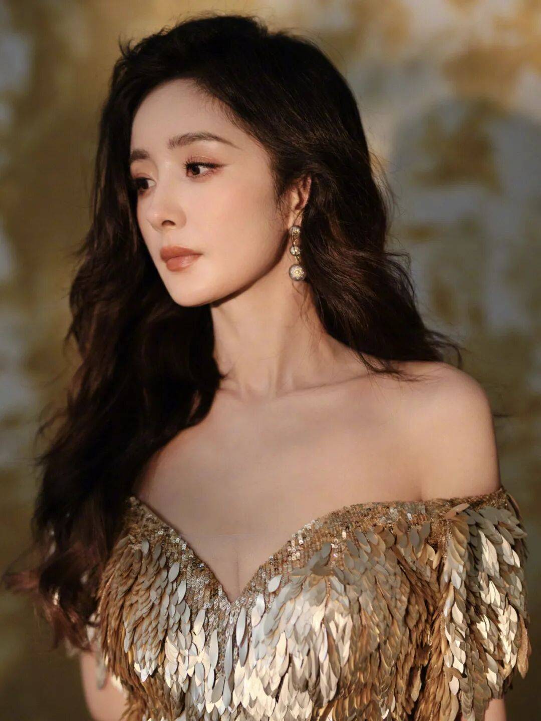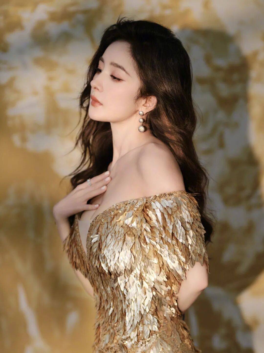 杨幂金色礼服裙,搭配长发朱唇魅力满级