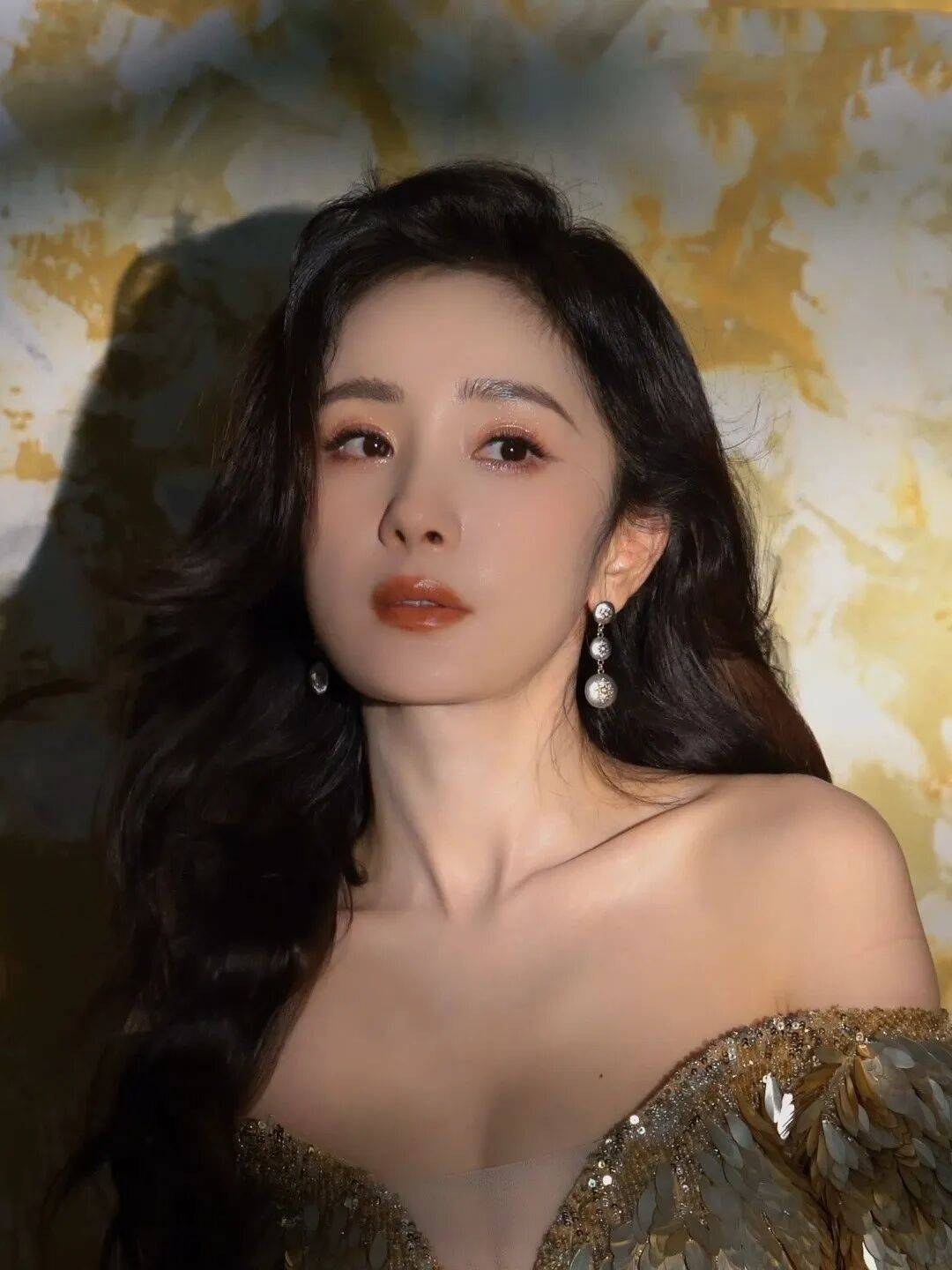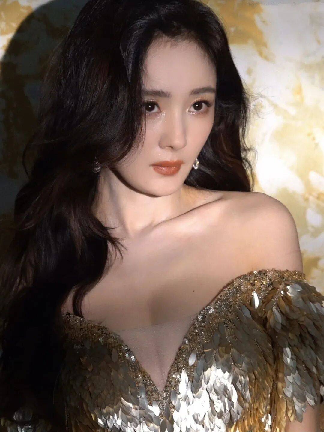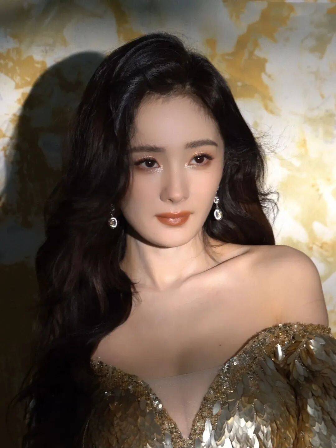 杨幂金色礼服裙,搭配长发朱唇魅力满级