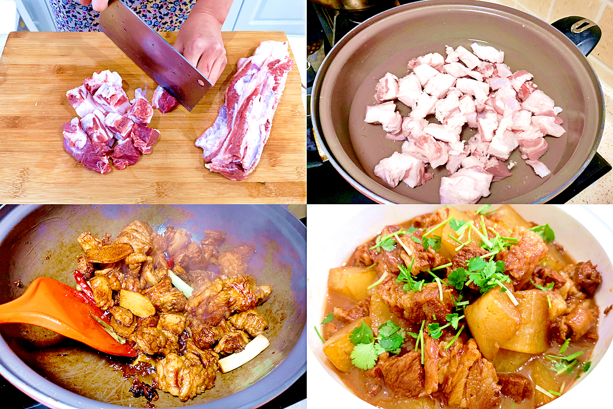 3. 倒入羊肉翻炒至表面微黄,烹入料酒;加生抽、老抽、冰糖翻炒上色,倒入足量开水; 4. 大火烧开转小火慢炖40分钟;白萝卜去皮切滚刀块,放入锅中继续炖20分钟;最后大火收汁,加盐调味,撒上香菜即可。 羊肉软烂入味,白萝卜吸饱了汤汁,入口即化。这道菜香气扑鼻,吃完全身都暖洋洋的。红烧的做法去除了羊肉的膻味,留下的只有鲜美。冬天炖上这么一锅,全家人都爱吃。