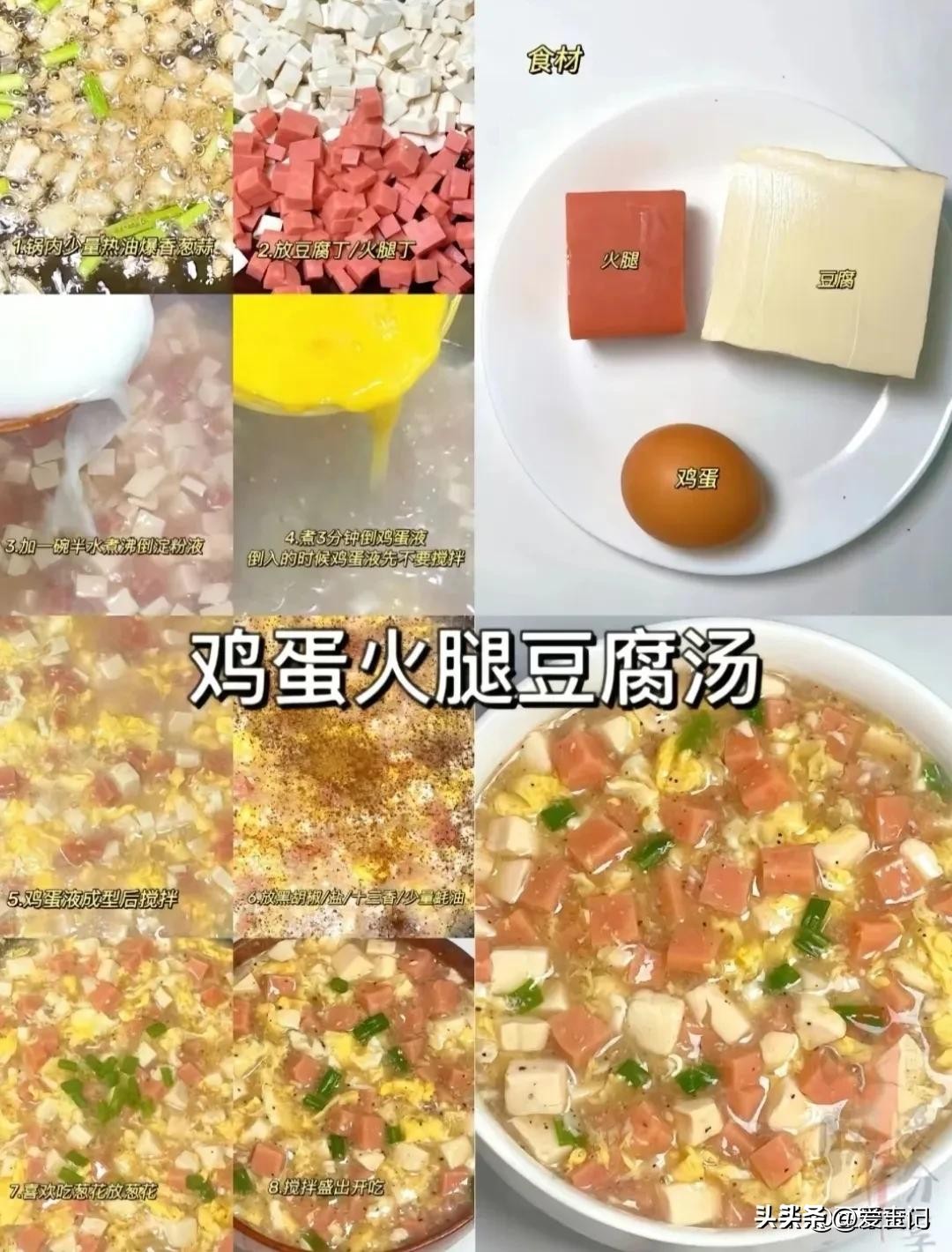 鸡蛋火腿豆腐汤 准备食材:鸡蛋,火腿肠,豆腐。