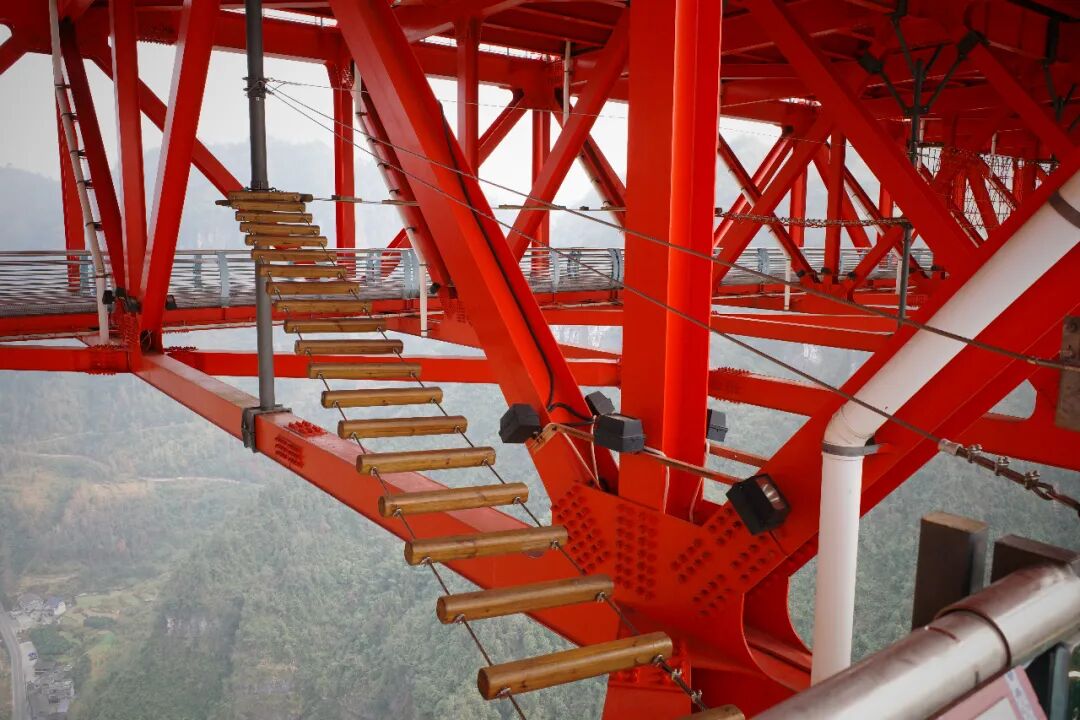 通道直接连着挂在悬崖外侧的玻璃栈道,胆大的可以走出去,感受一把“悬空”漫步。