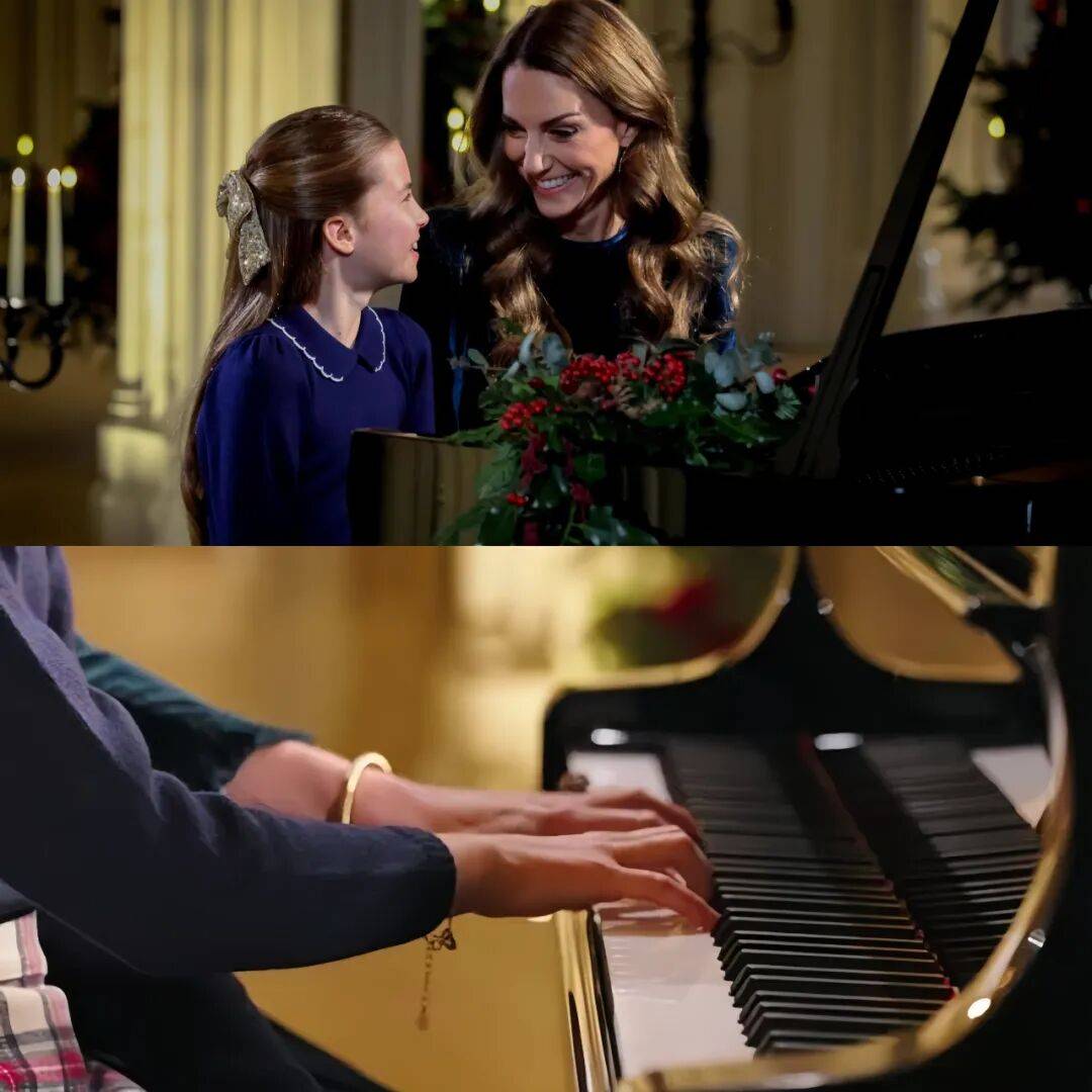凯特王妃用左手弹低音部,夏洛特公主用右手弹高音部,配合默契,偶尔相视微笑,超级有爱!