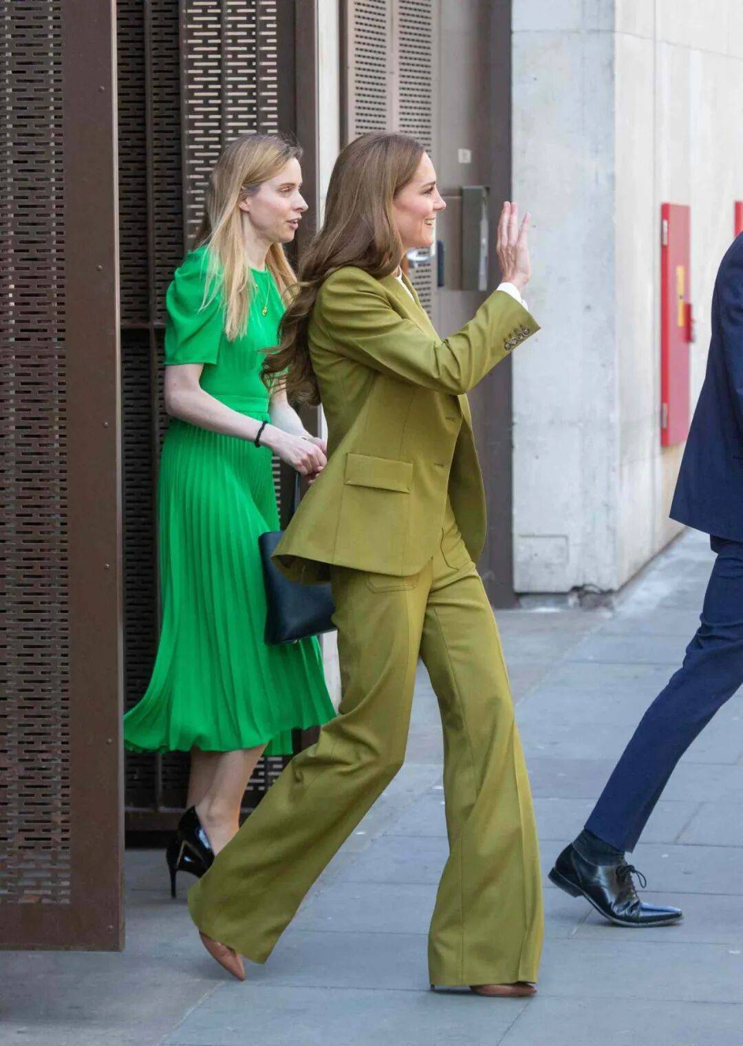 凯特的这套橄榄绿套装,也让范主印象很深,来自贝嫂的品牌Victoria Beckham。而且在贝嫂纪录片首播的时候穿,就很有支持的意味。