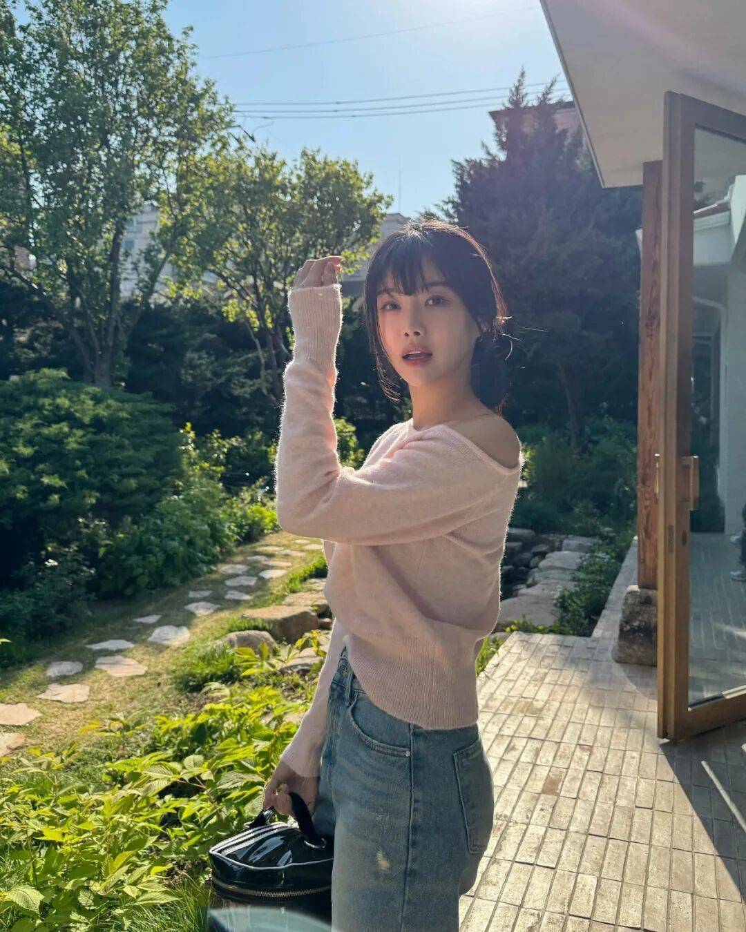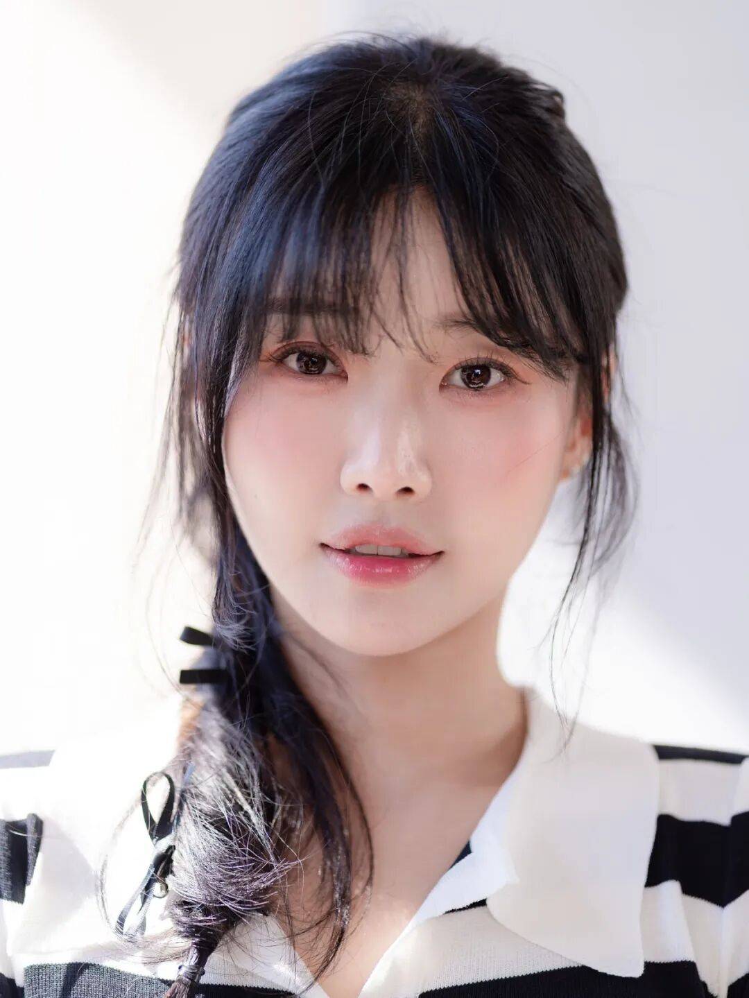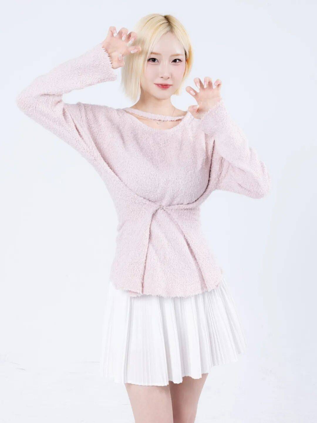 徐贤淑的辨识度,从那一头耀眼的金色短发就直接拉满。不同于常见的黑色长发,她的金色短发修剪得利落干练,发尾带着淡淡的弧度,蓬松又有质感,阳光底下泛着温柔又耀眼的光泽,衬得她的肌肤愈发白皙通透,像裹了一层柔光滤镜。利落的短发没有丝毫拖沓感,反而凸显出她精致小巧的脸型,眉眼间的娇俏与灵动被放大,自带元气少女的鲜活感,一眼望去,满是青春活力。
