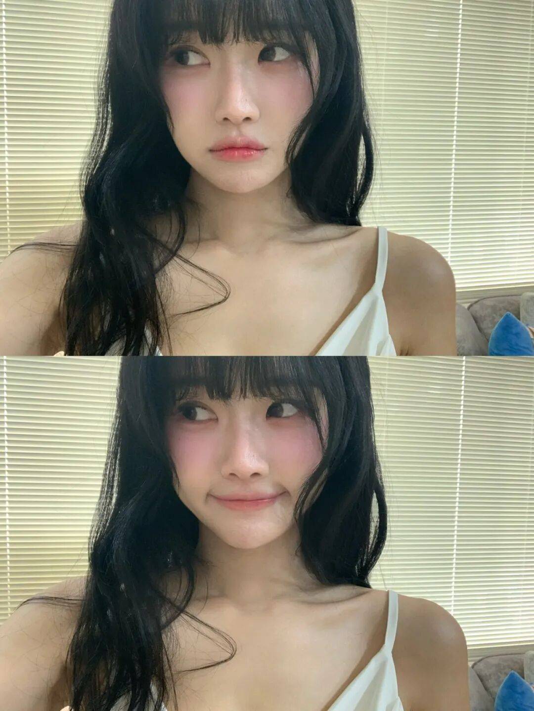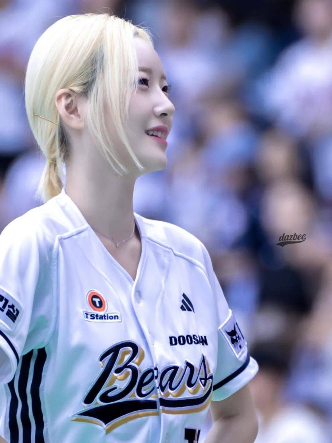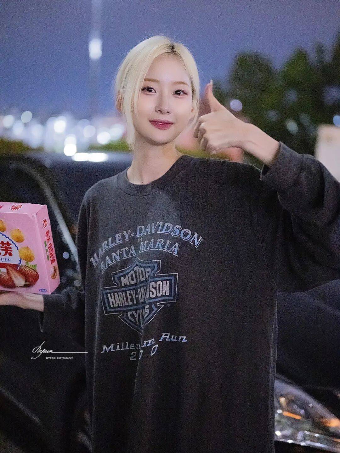 徐贤淑的辨识度,从那一头耀眼的金色短发就直接拉满。不同于常见的黑色长发,她的金色短发修剪得利落干练,发尾带着淡淡的弧度,蓬松又有质感,阳光底下泛着温柔又耀眼的光泽,衬得她的肌肤愈发白皙通透,像裹了一层柔光滤镜。利落的短发没有丝毫拖沓感,反而凸显出她精致小巧的脸型,眉眼间的娇俏与灵动被放大,自带元气少女的鲜活感,一眼望去,满是青春活力。